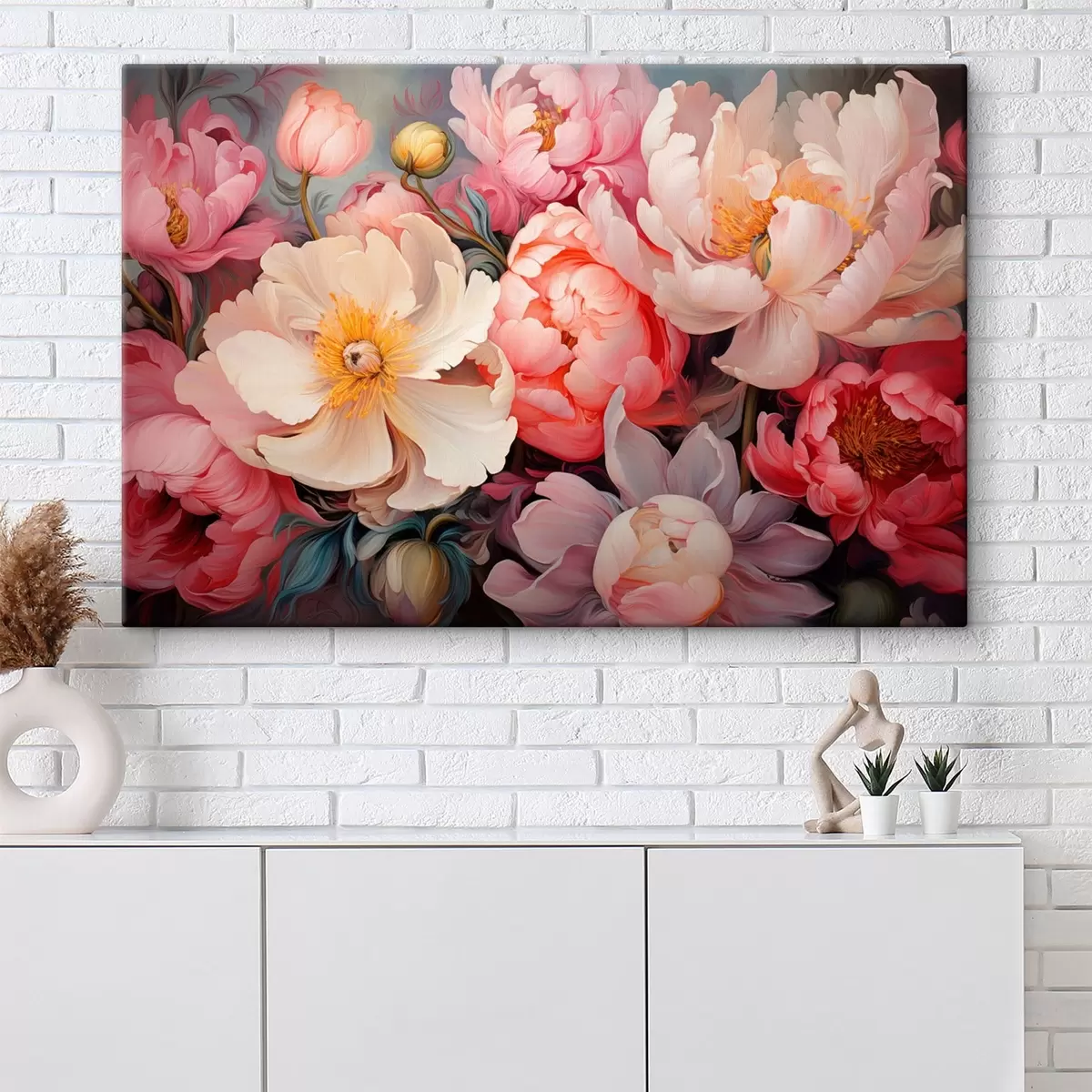 Vászonkép Dús bazsarózsák rózsaszín árnyalatokban olajfestmény stílusban Nr s44936
