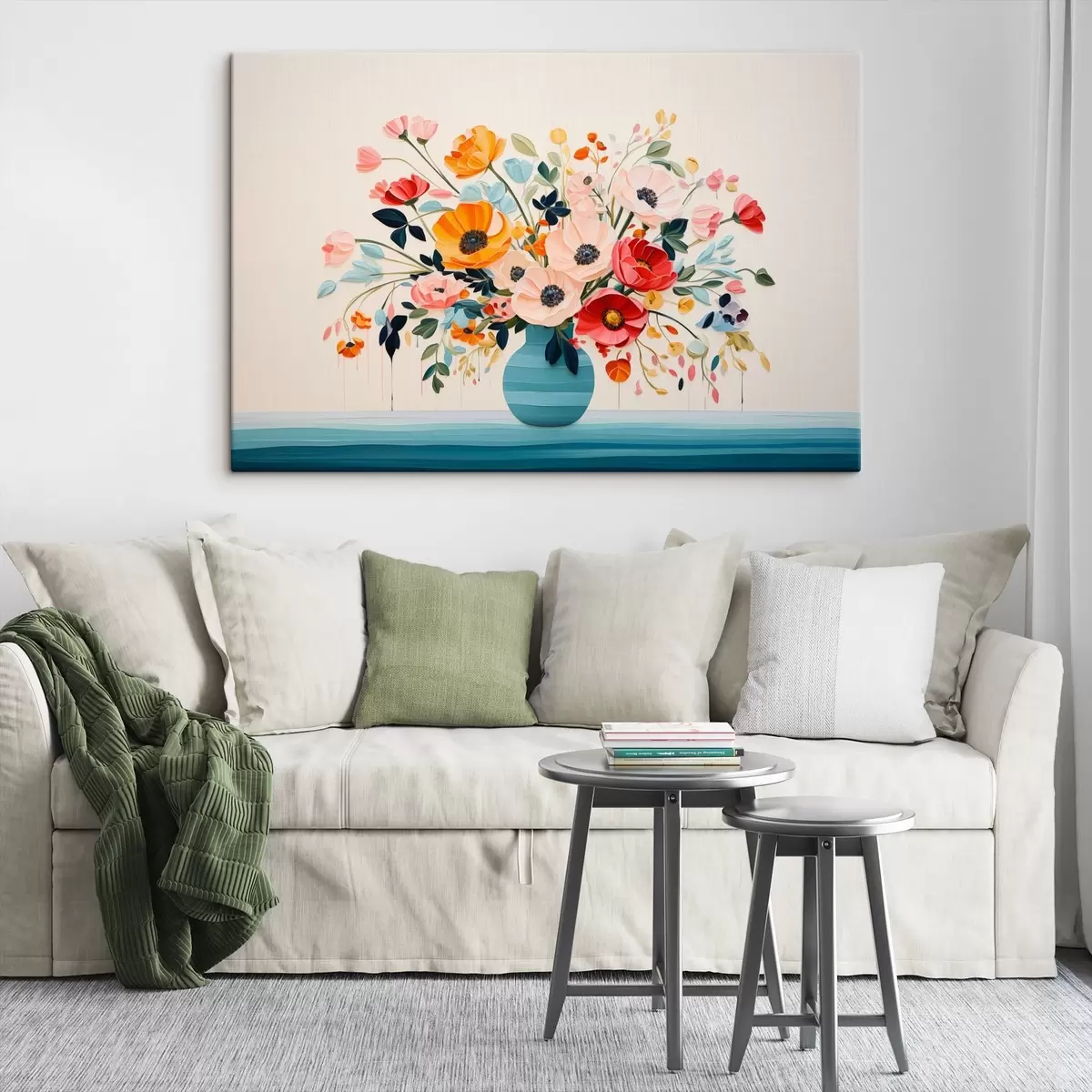 Vászonkép Színes csokor kék vázában dekoratív stílusban Nr s44937
