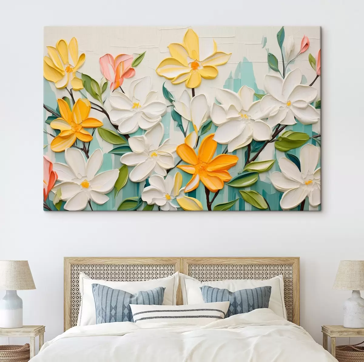 Vászonkép Dombornyomott virágok élénk színekben ecsetvonás utánzó stílusban Nr s44942
