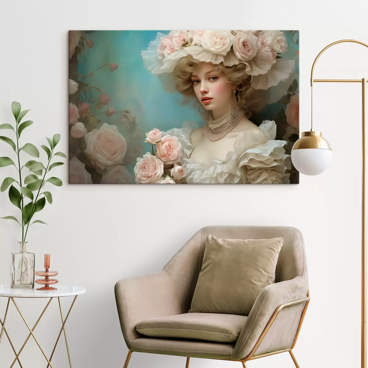 Vászonkép Elegáns hölgy egy kalapban virágokkal művészi stílusban Nr s44944