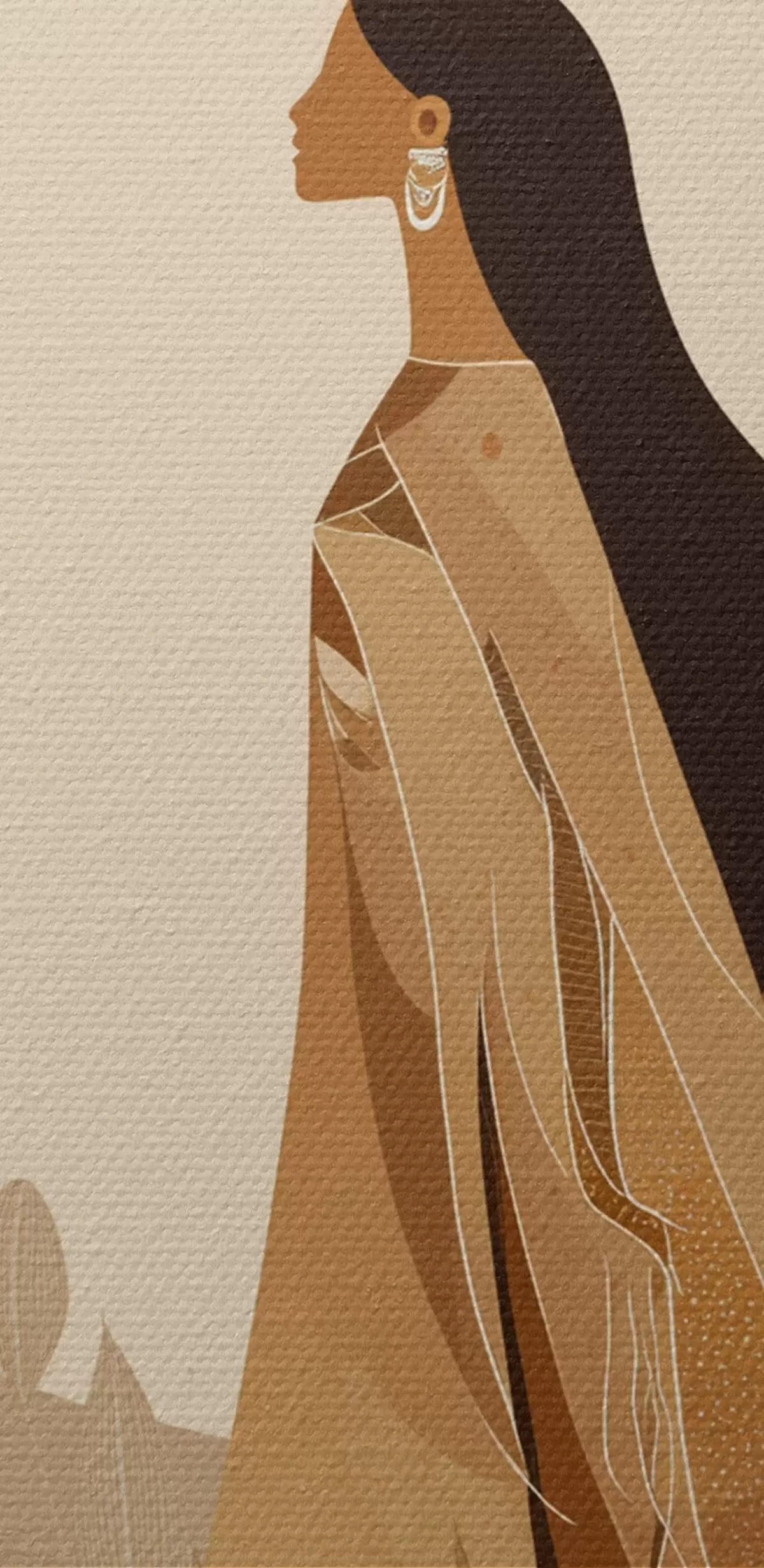 Vászonkép Absztrakció nővel és sassal az égen, bézs színekkel Nr s44978