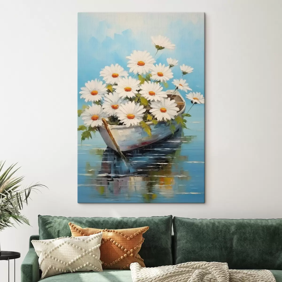 Vászonkép Százszorszépek egy csónakban a vízen Nr s44987