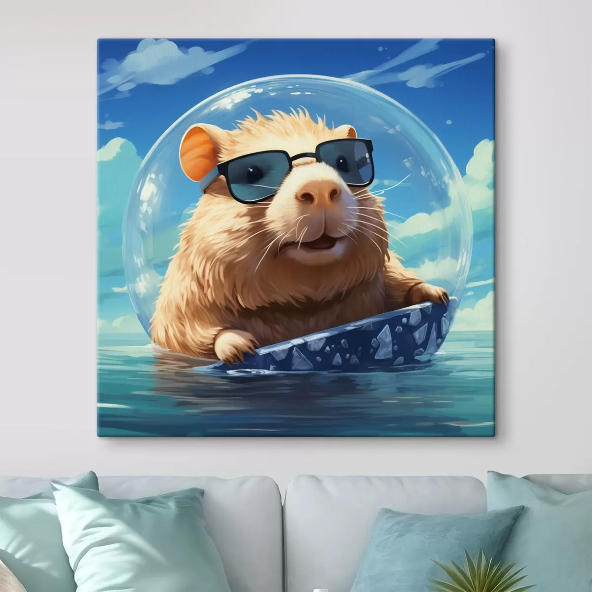 Vászonkép Vidám capybara egy átlátszó buborékban a vízen Nr s45029