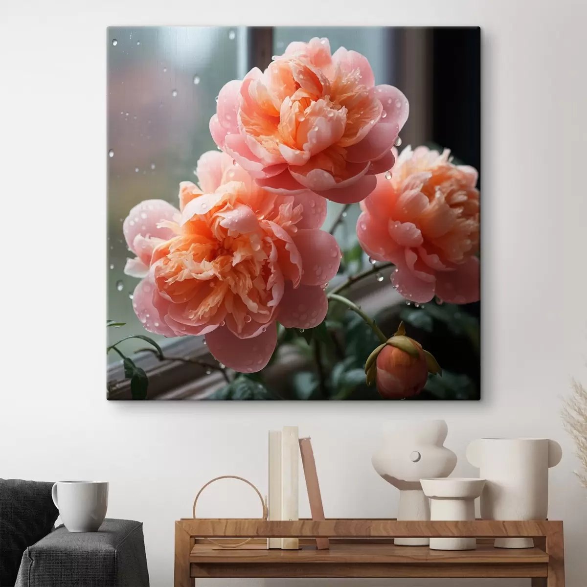 Vászonkép Három bazsarózsa harmattal a reggeli fényben Nr s45033