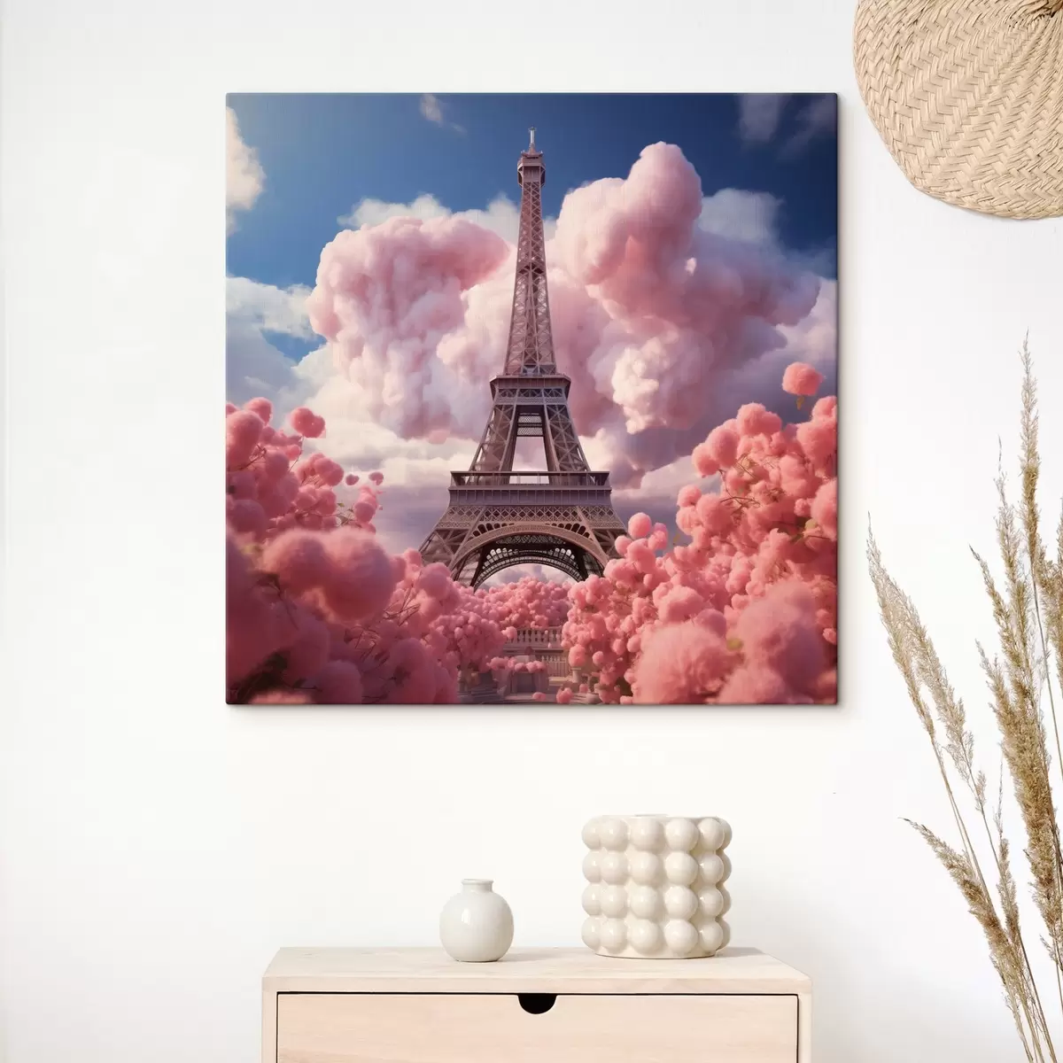 Vászonkép Eiffel-torony rózsaszín felhőkben fantasy stílusban Nr s45036