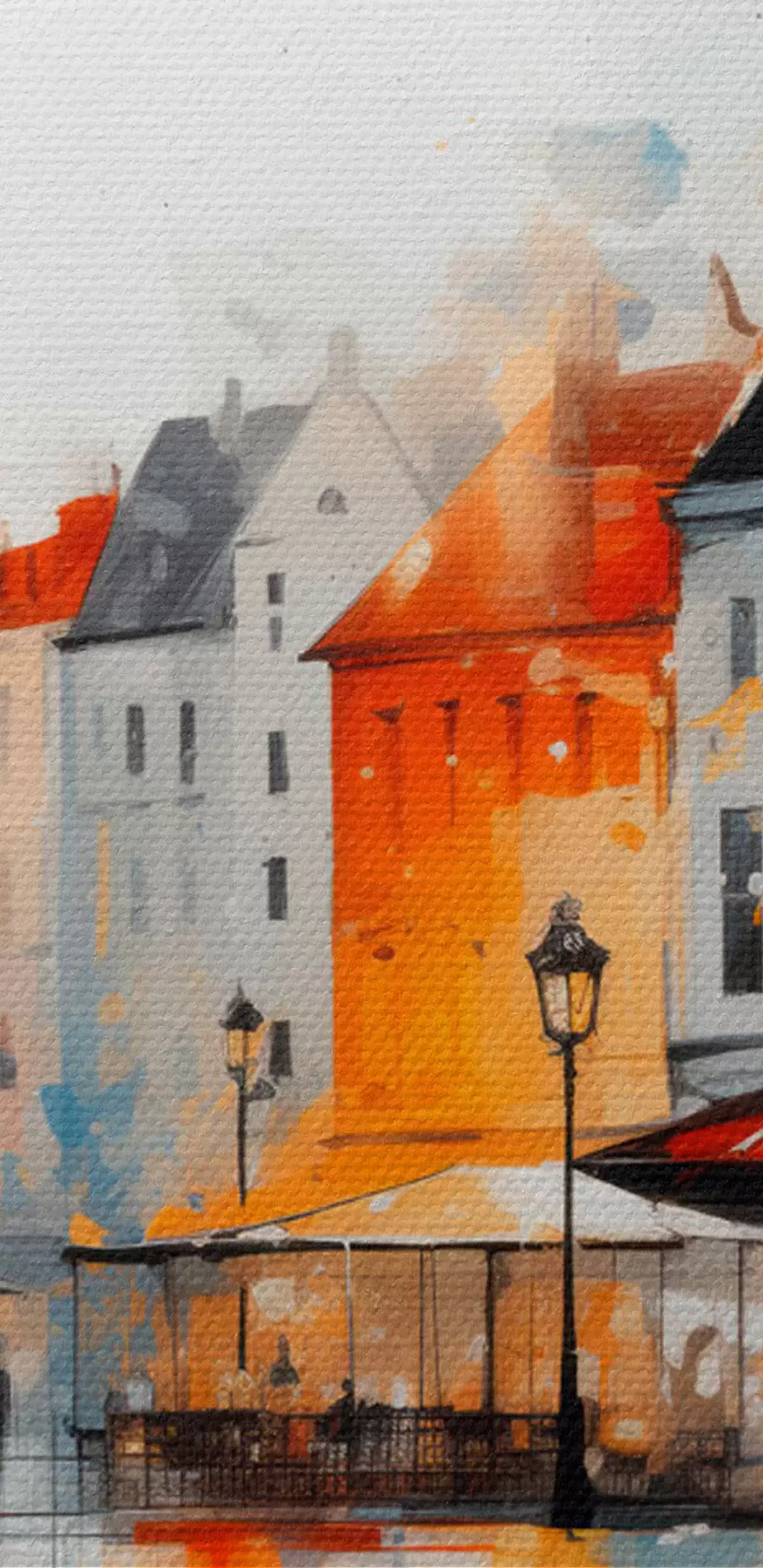 Vászonkép Utcai jelenet épületekkel és emberekkel művészi stílusban Nr s45050