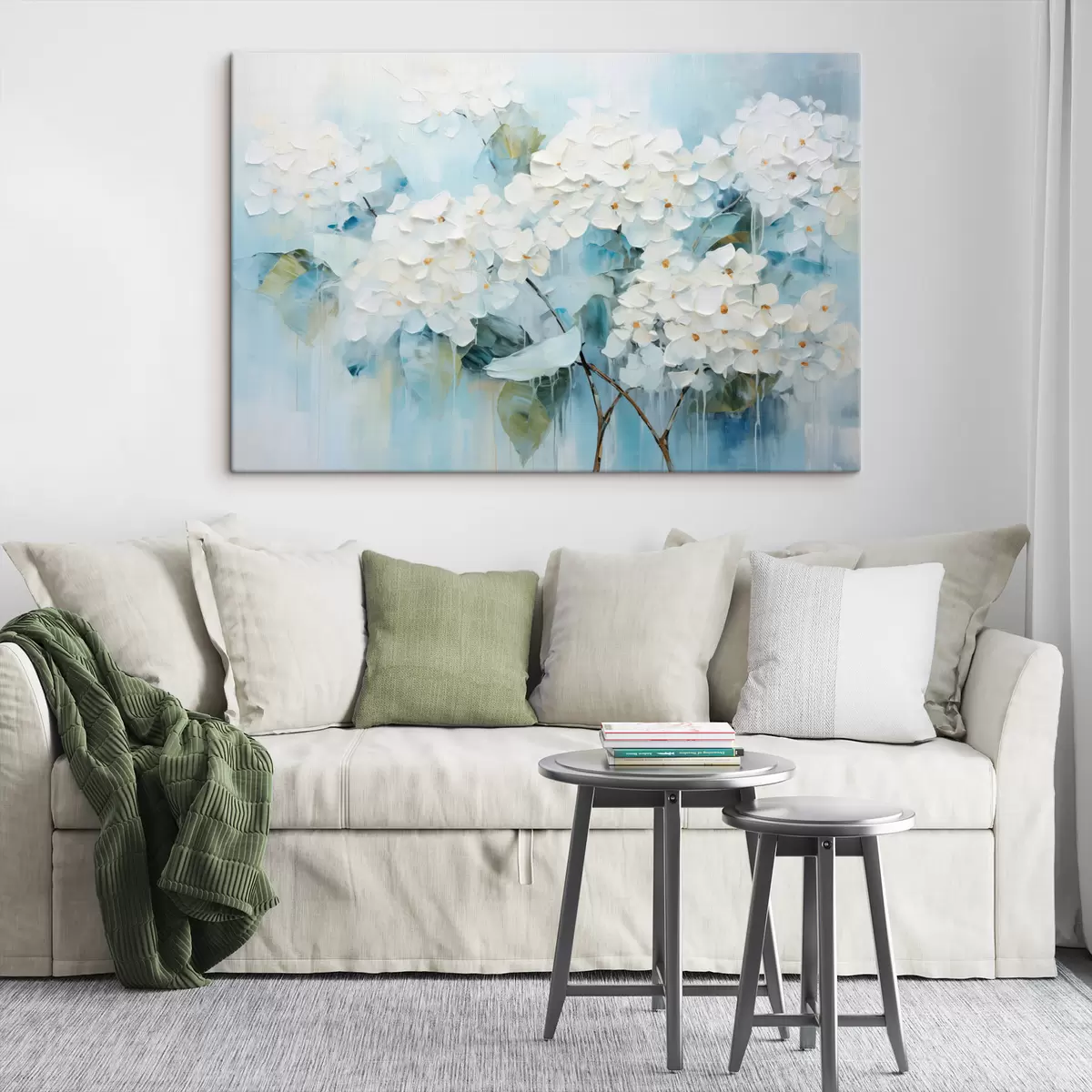Vászonkép Virágzó fehér hortenziák olajfestmény stílusban Nr s45051