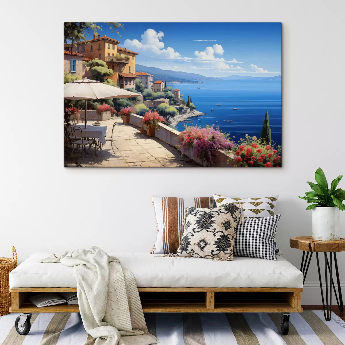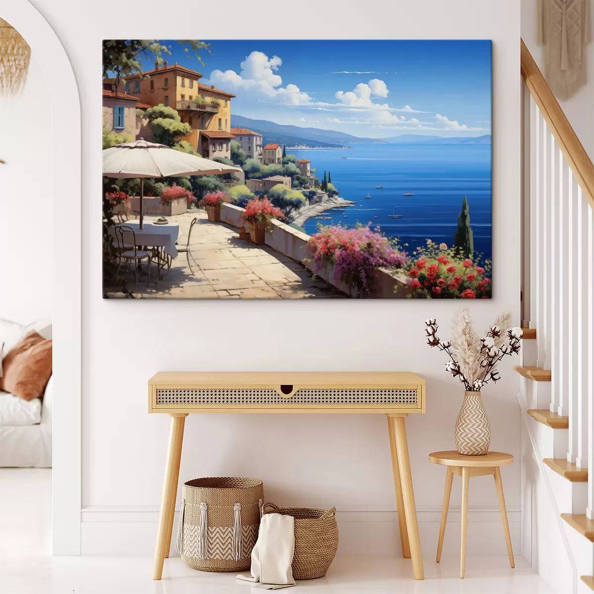 Vászonkép Mediterrán táj virágzó terasszal művészi stílusban Nr s45053