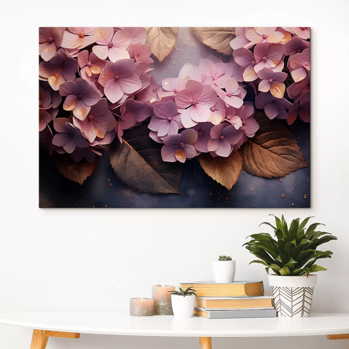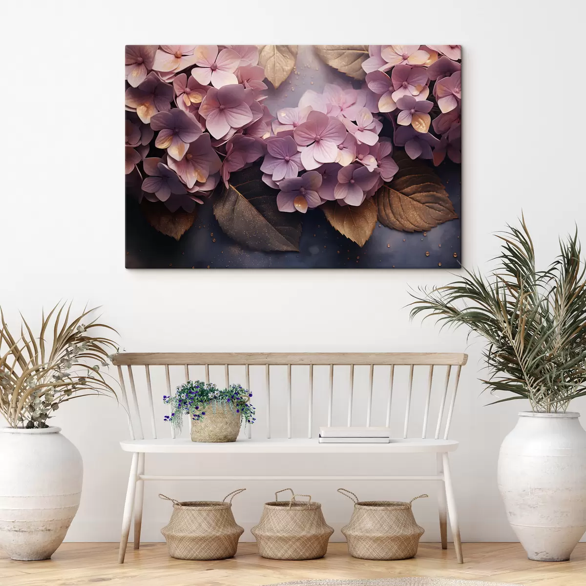 Vászonkép Dús rózsaszín hortenziák sötét háttéren festői stílusban Nr s45054