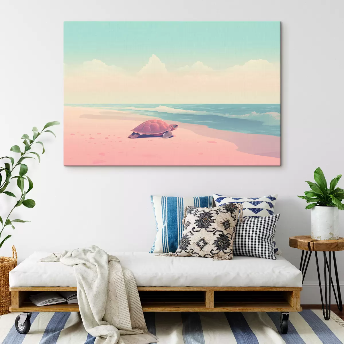 Vászonkép Tengeri teknős egy rózsaszín strandon: minimalista tájkép Nr s45059