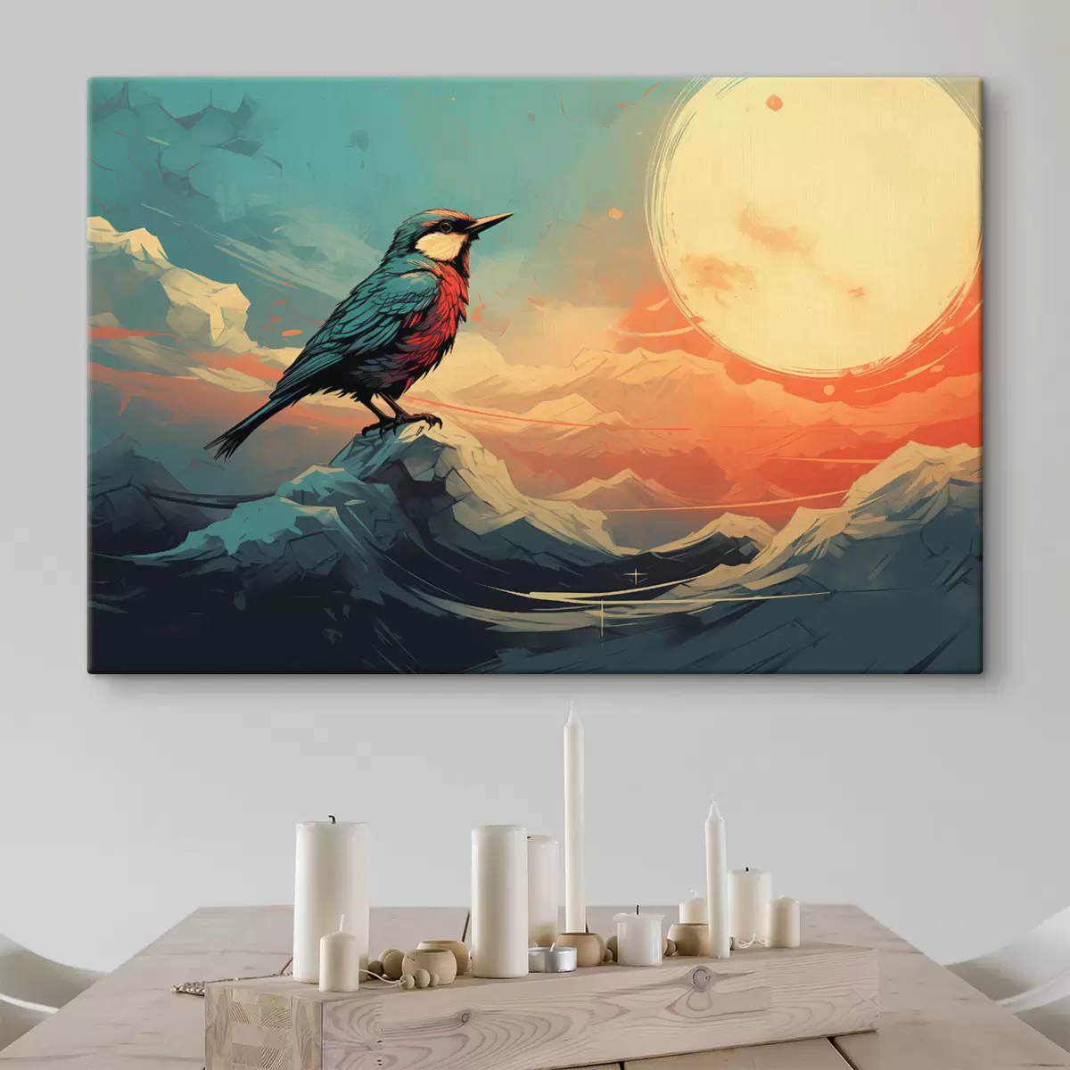 Vászonkép Művészi táj madárral és vibráló égbolt Nr s45060