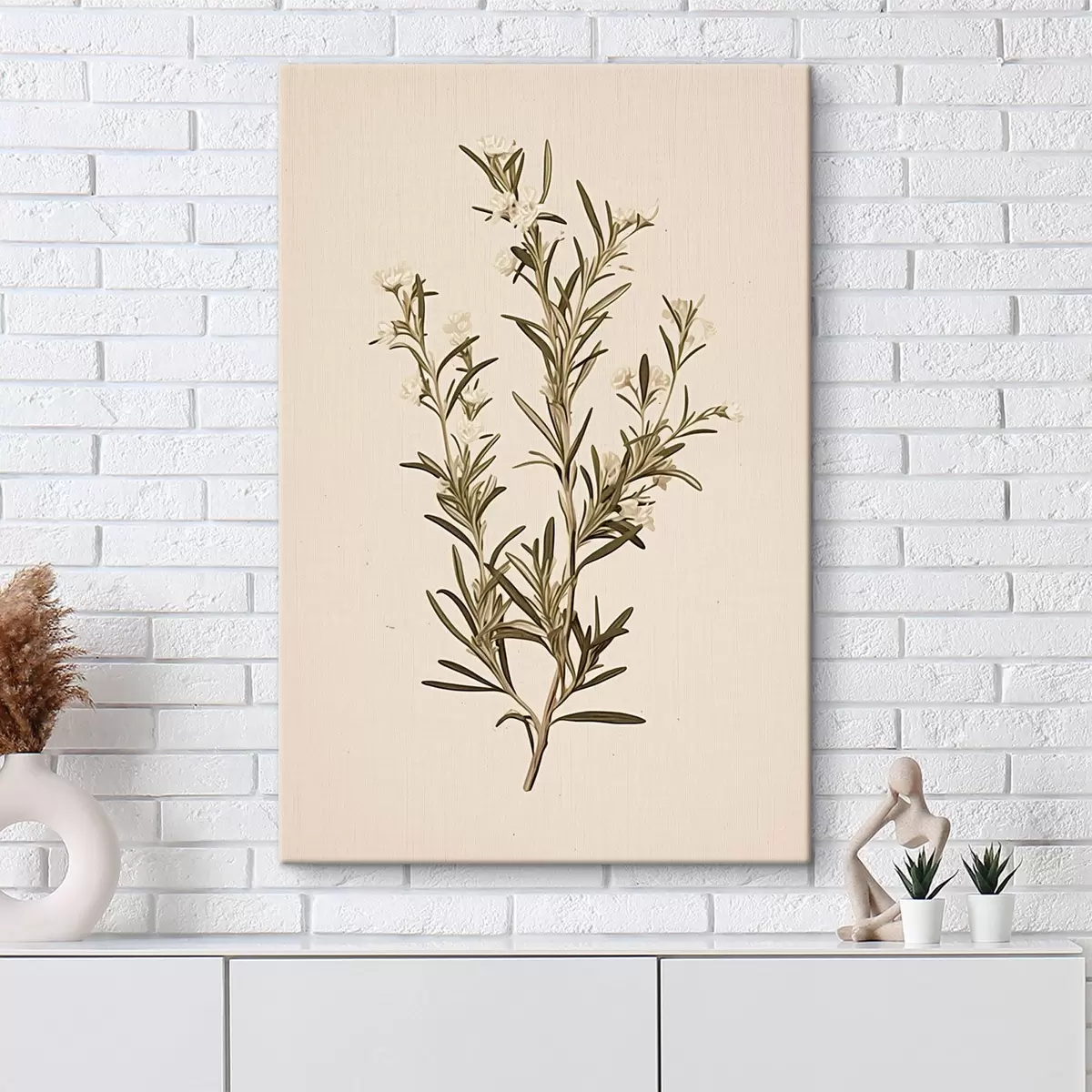 Vászonkép botanikai, ág, bézs háttér, gyógynövény, minimal, növény, zöld levelek, szár, szár, bézs háttér Nr s45098