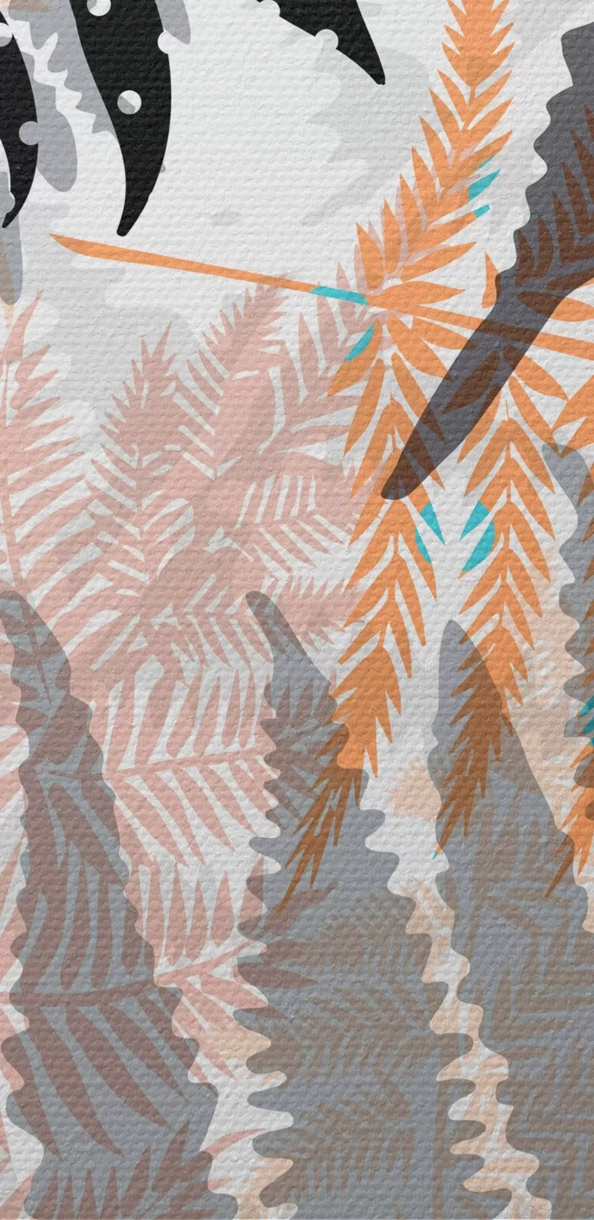 Vászonkép trópusi levelek, grafika, textúra, bézs és fekete, sziluett, kortárs, növény, növény Nr s45103