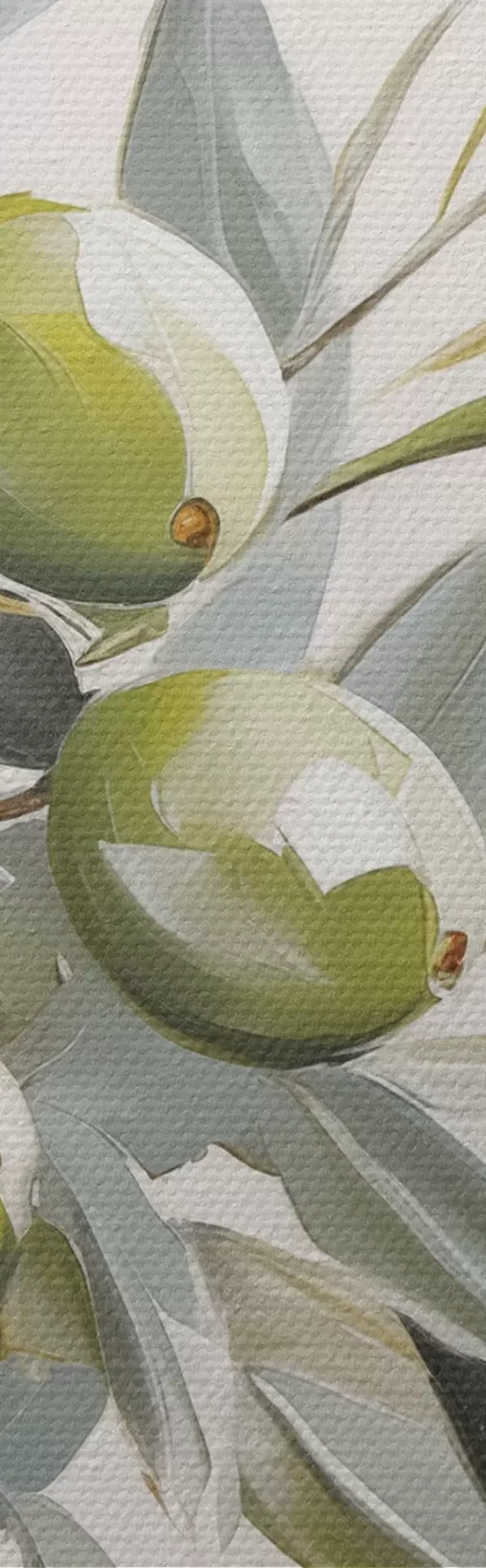 Vászonkép olajág, zöld gyümölcs, tompa tónusok, levelek, minimál, természetes, olajfestmény, botanika, növényvilág Nr s45109