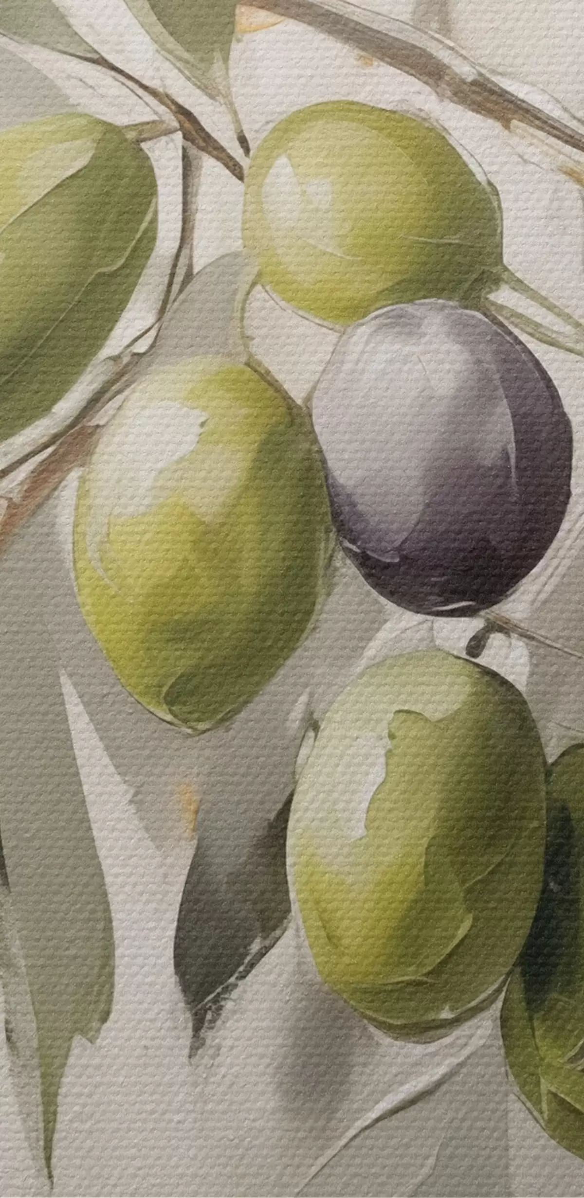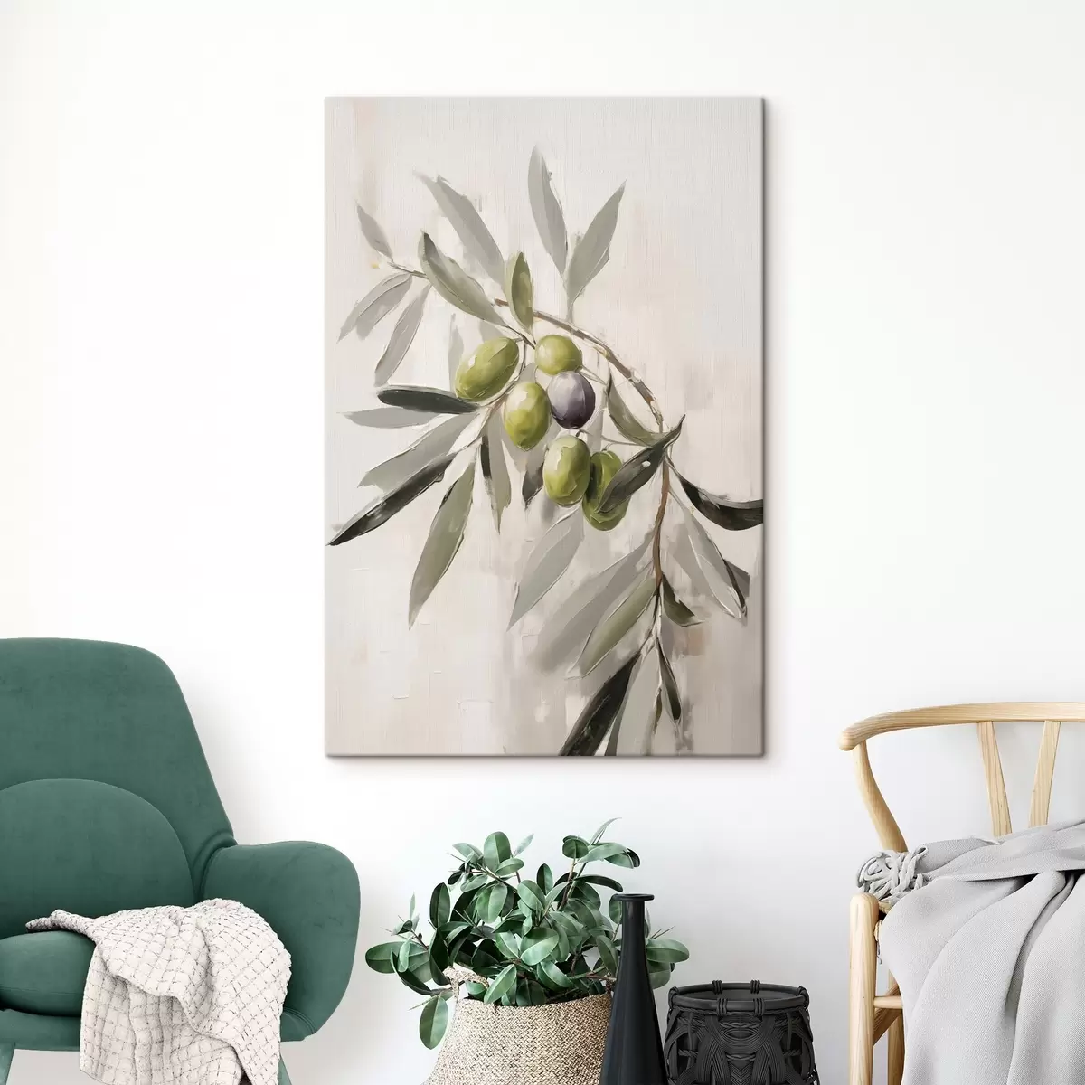 Vászonkép zöld olajbogyó, ág részlet, könnyű háttér, organikus, természetes paletta, rusztikus, rusztikus Nr s45110