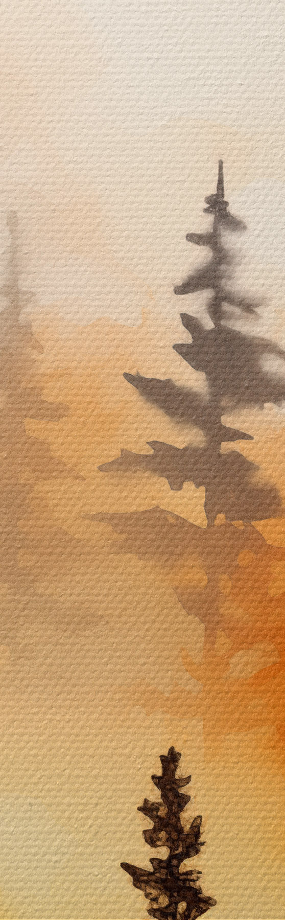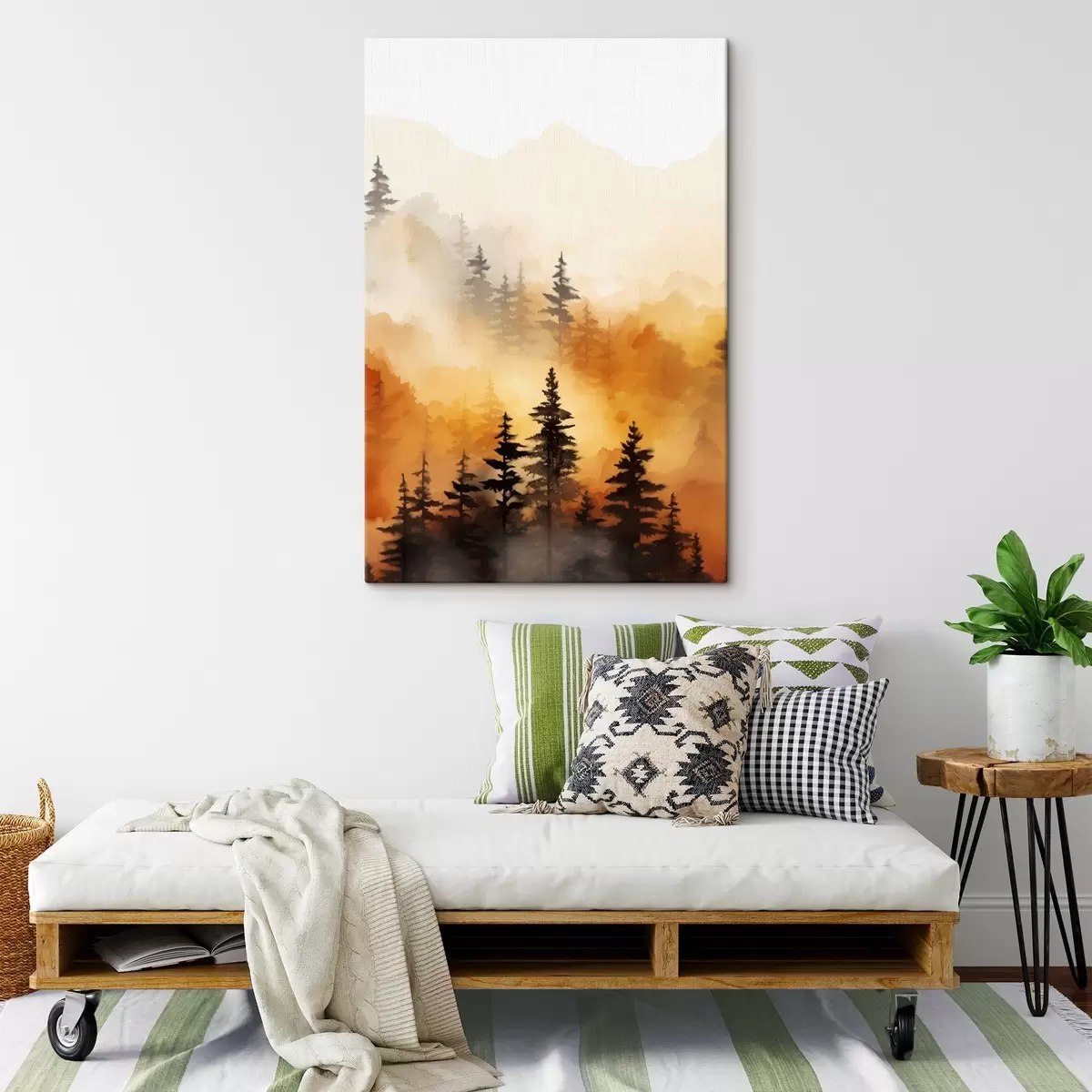 Vászonkép Egy táj akvarell festmény utánzata egy erdő magas fenyőfák és hegyek a háttérben Nr s45170