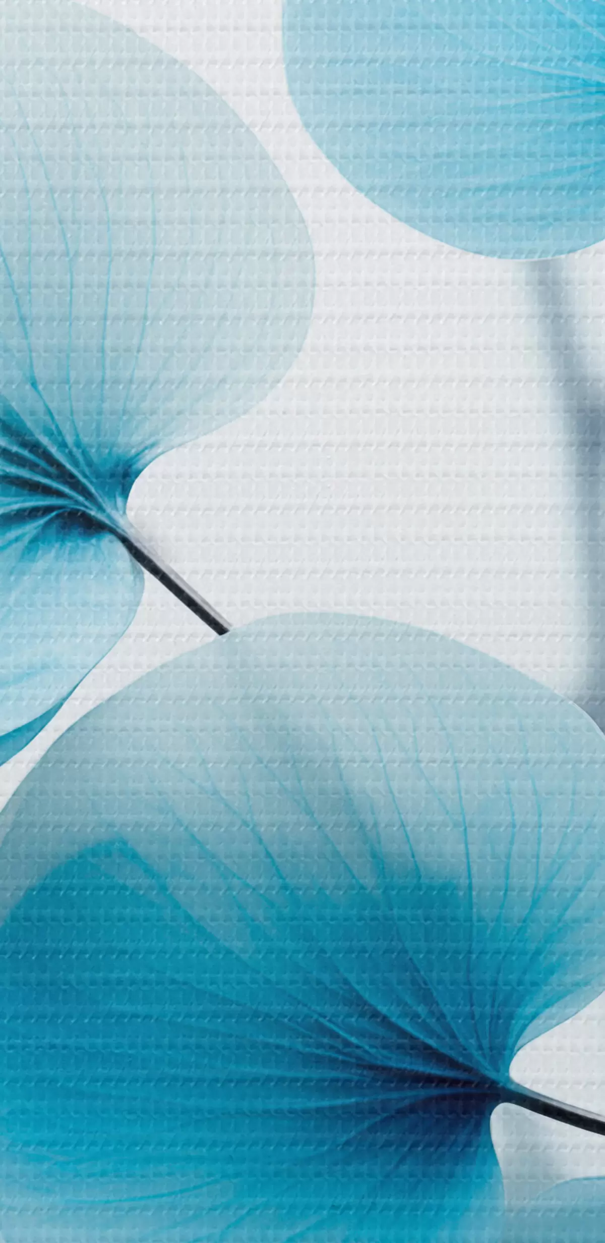 Vászonkép Ágak áttetsző kék levelekkel, finom erek láthatóak, könnyed és nyugodt kompozíció, minimalista esztétika Nr s45176