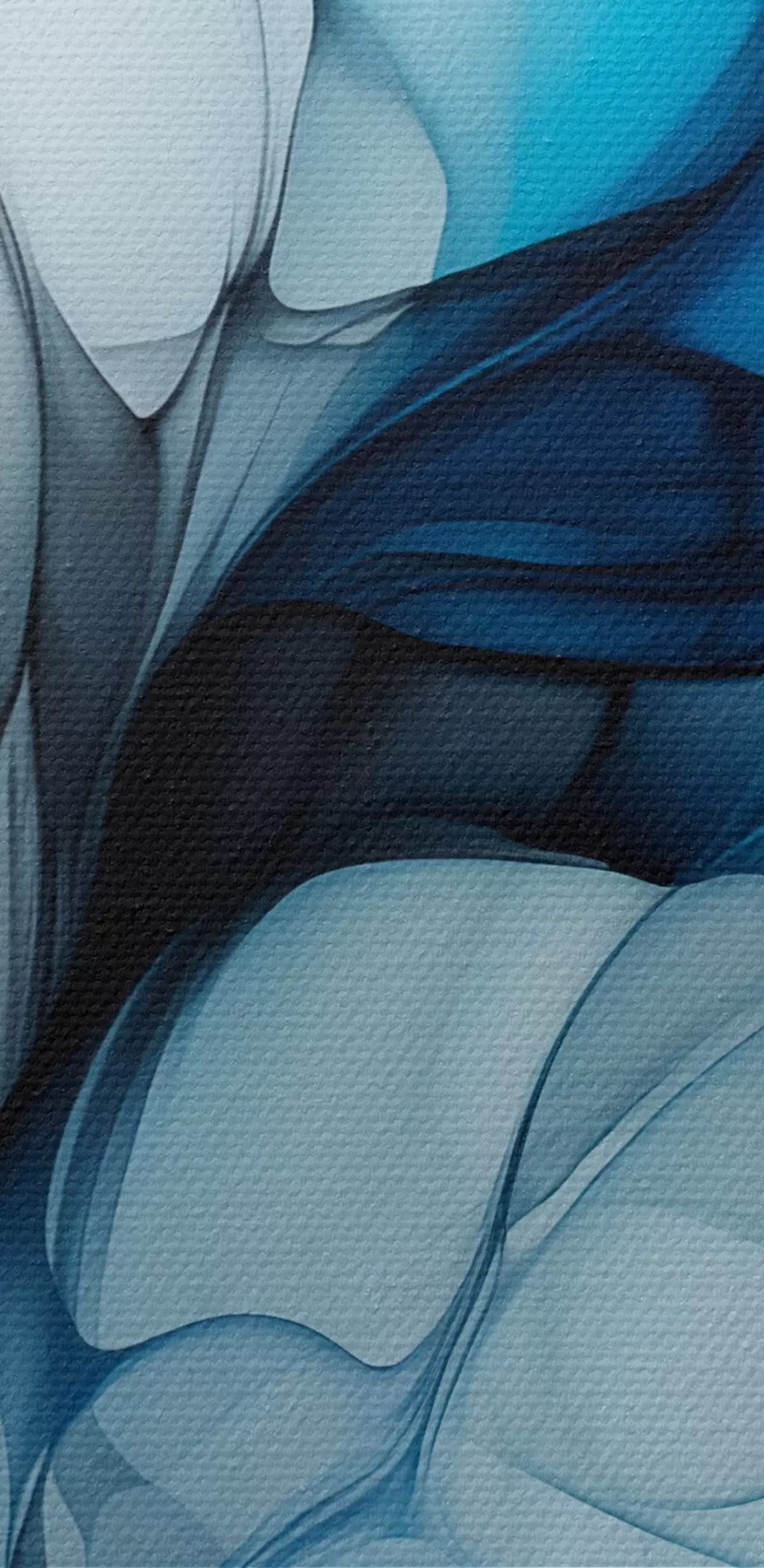 Vászonkép Absztrakt kompozíció áramló vonalakkal és áttetsző szirmokkal a kék fehér és bézs árnyalataiban, alkoholos tinta utánzása Nr s45178