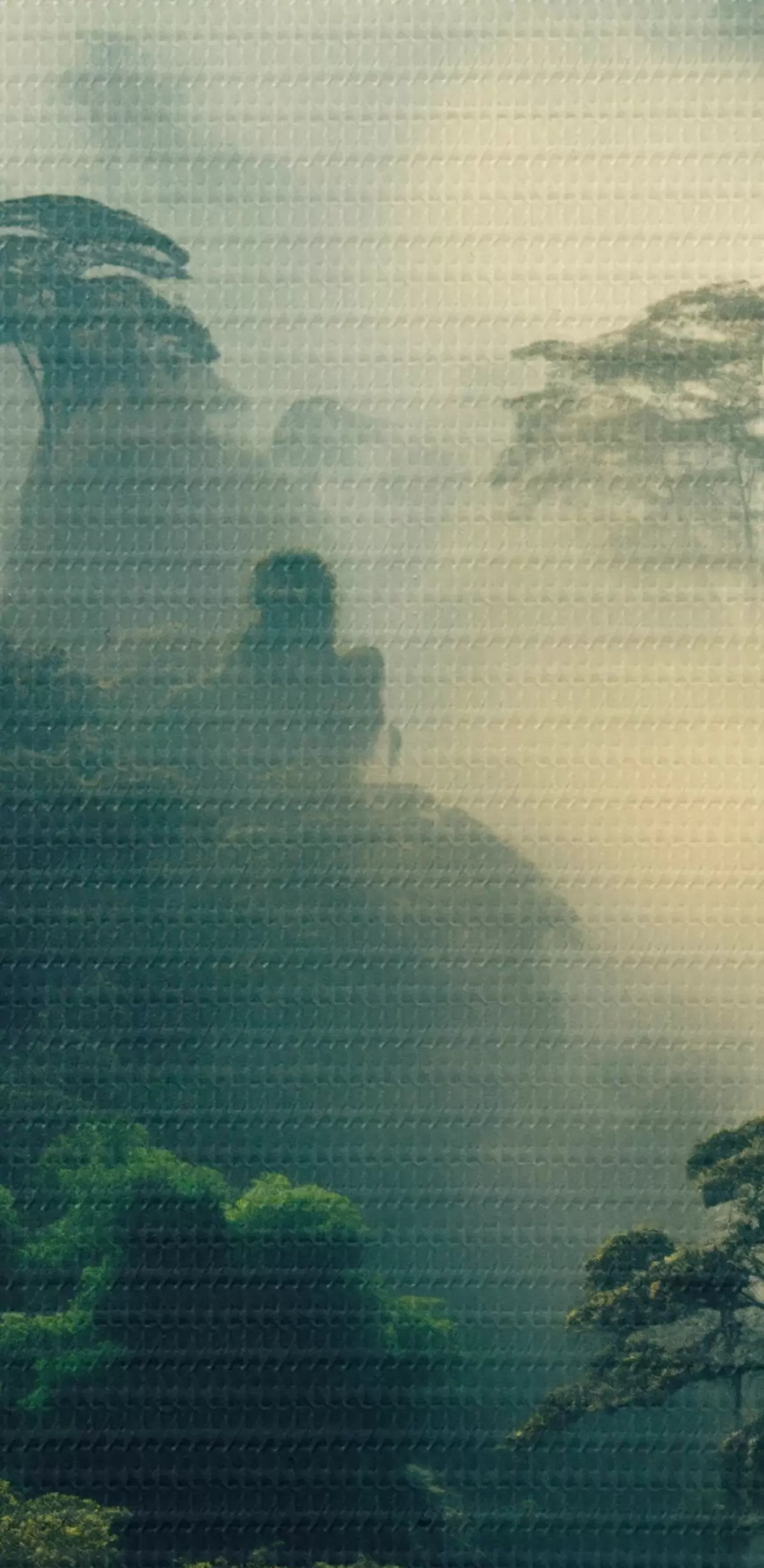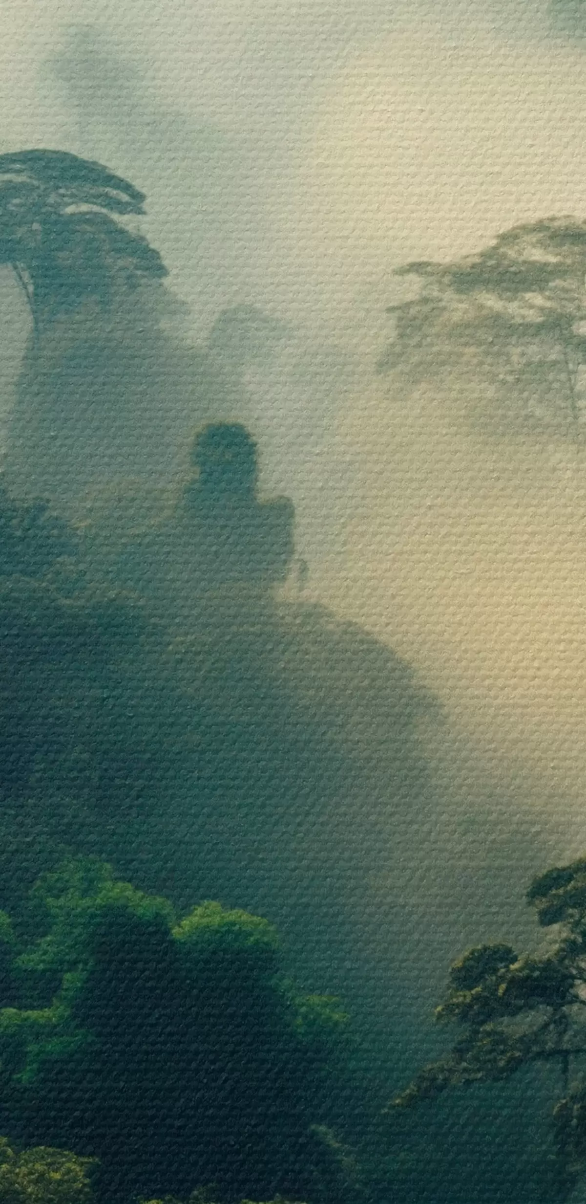 Vászonkép Trópusi esőerdő buja zöld fákkal és vastag ködréteggel, amely atmoszférikus környezetet teremt Nr s45190