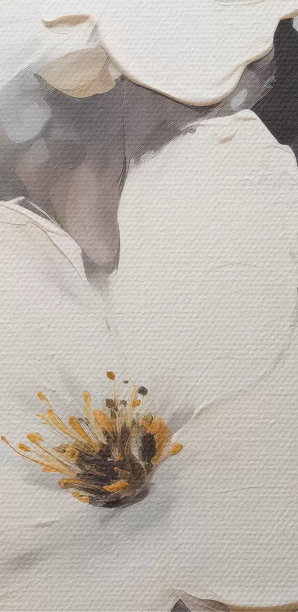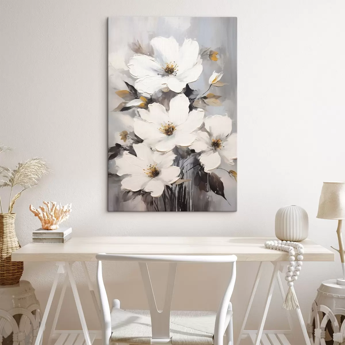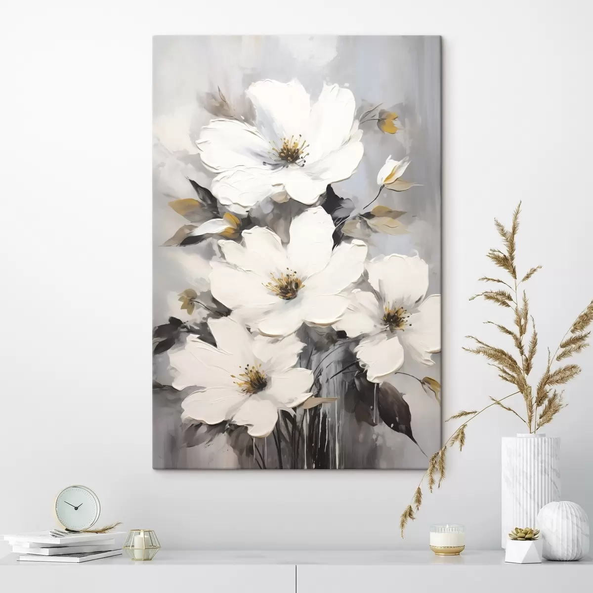 Vászonkép Fehér virágok: volumetrikus festmény szürke háttéren Nr s45252