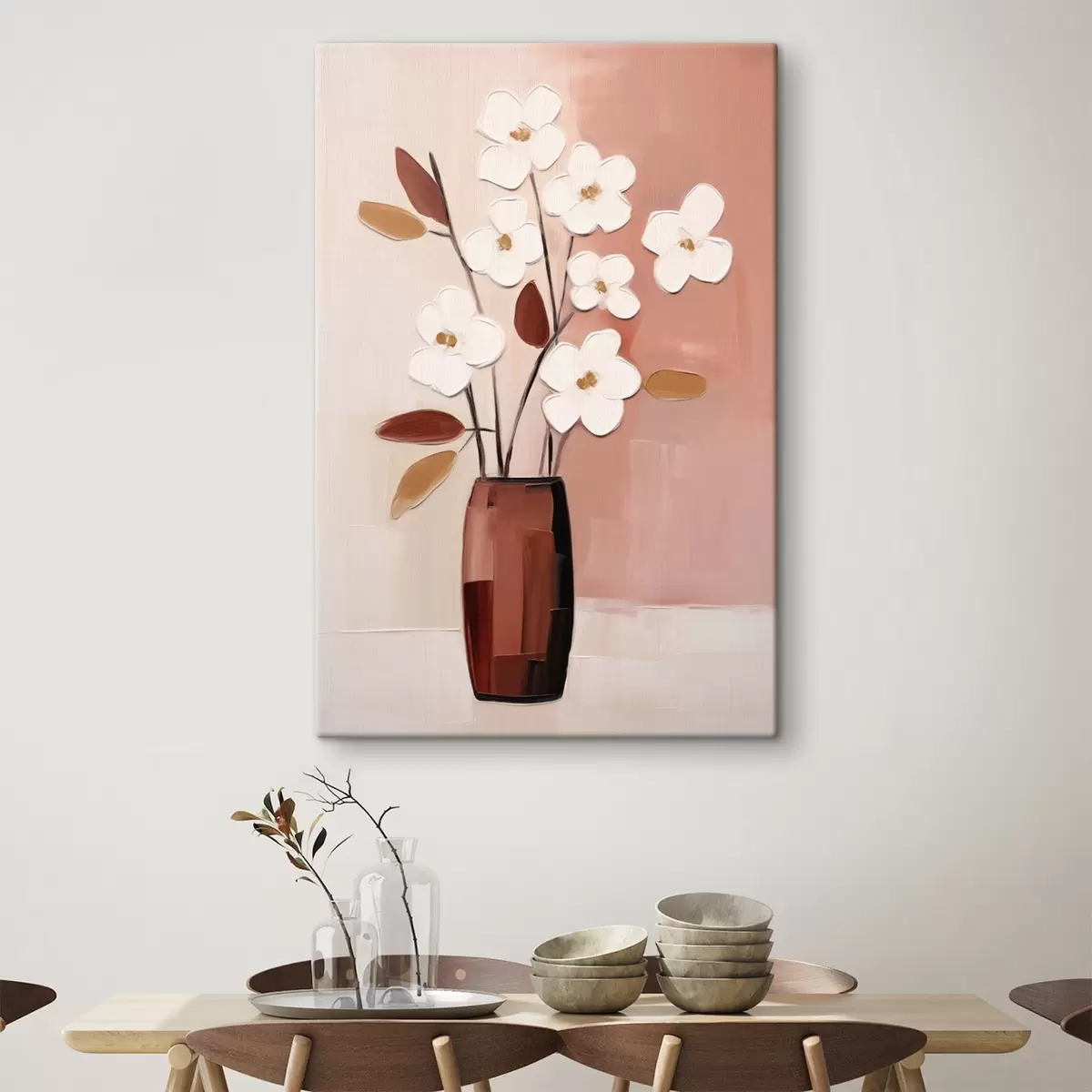 Vászonkép Fehér virágok egy sötét vázában: modern virágos festészet Nr s45255