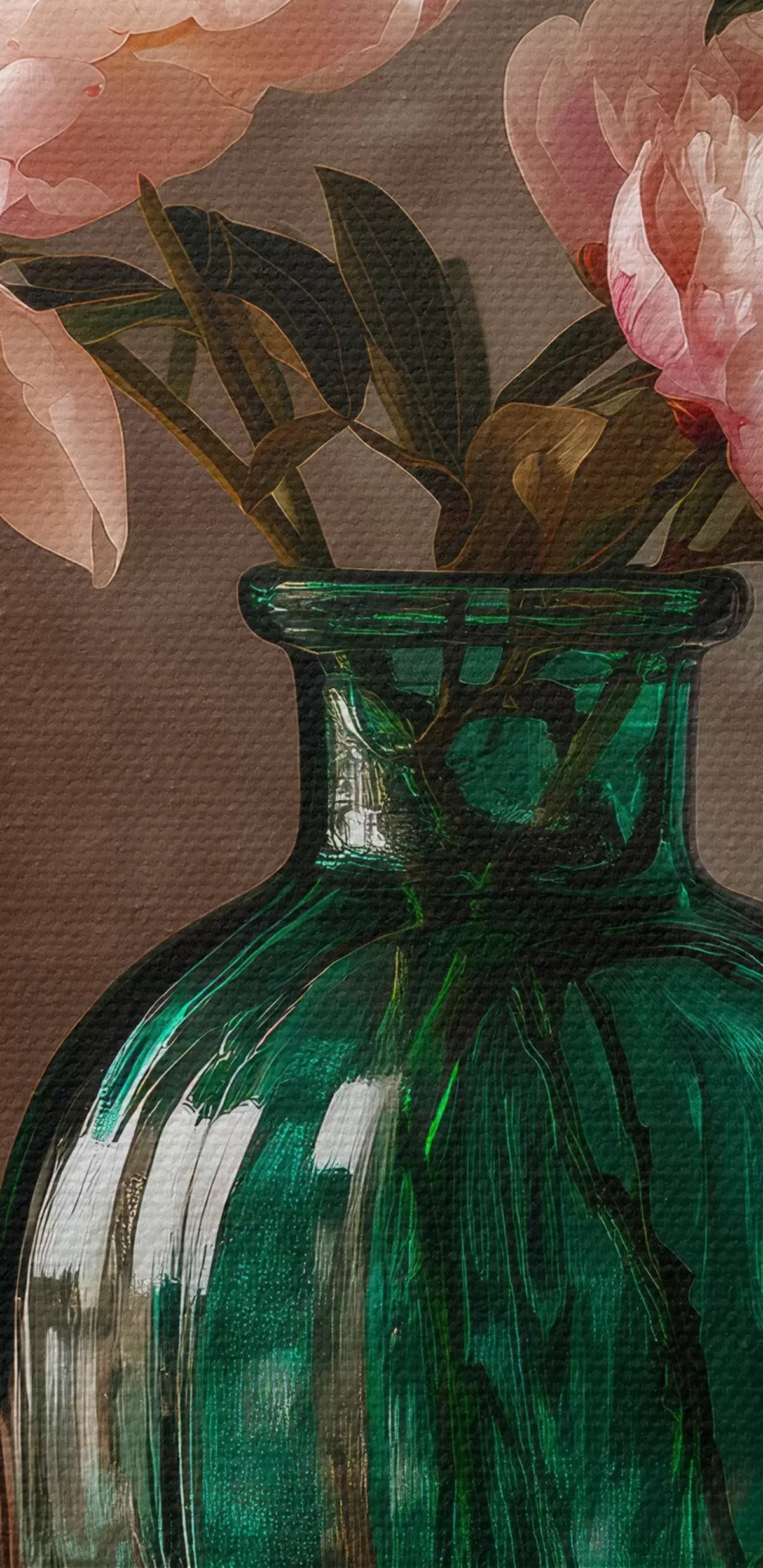 Vászonkép Finom rózsaszín bazsarózsák smaragdzöld vázában Nr s45261