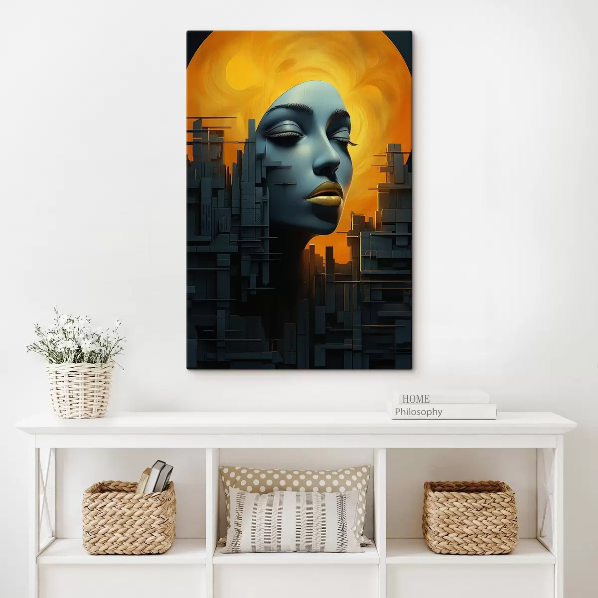 Vászonkép Emberek, lány arca város absztrakt háttéren Nr s45342