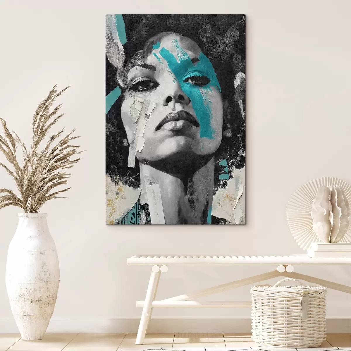 Vászonkép Vegyes média portré töredékekkel színes vonások és textúrák Nr s45416