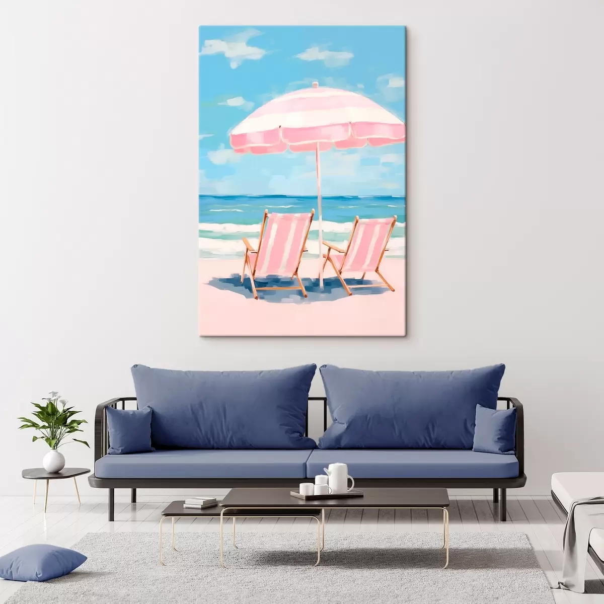 Vászonkép Napernyő és nyugágyak a tengerparton Nr s45442