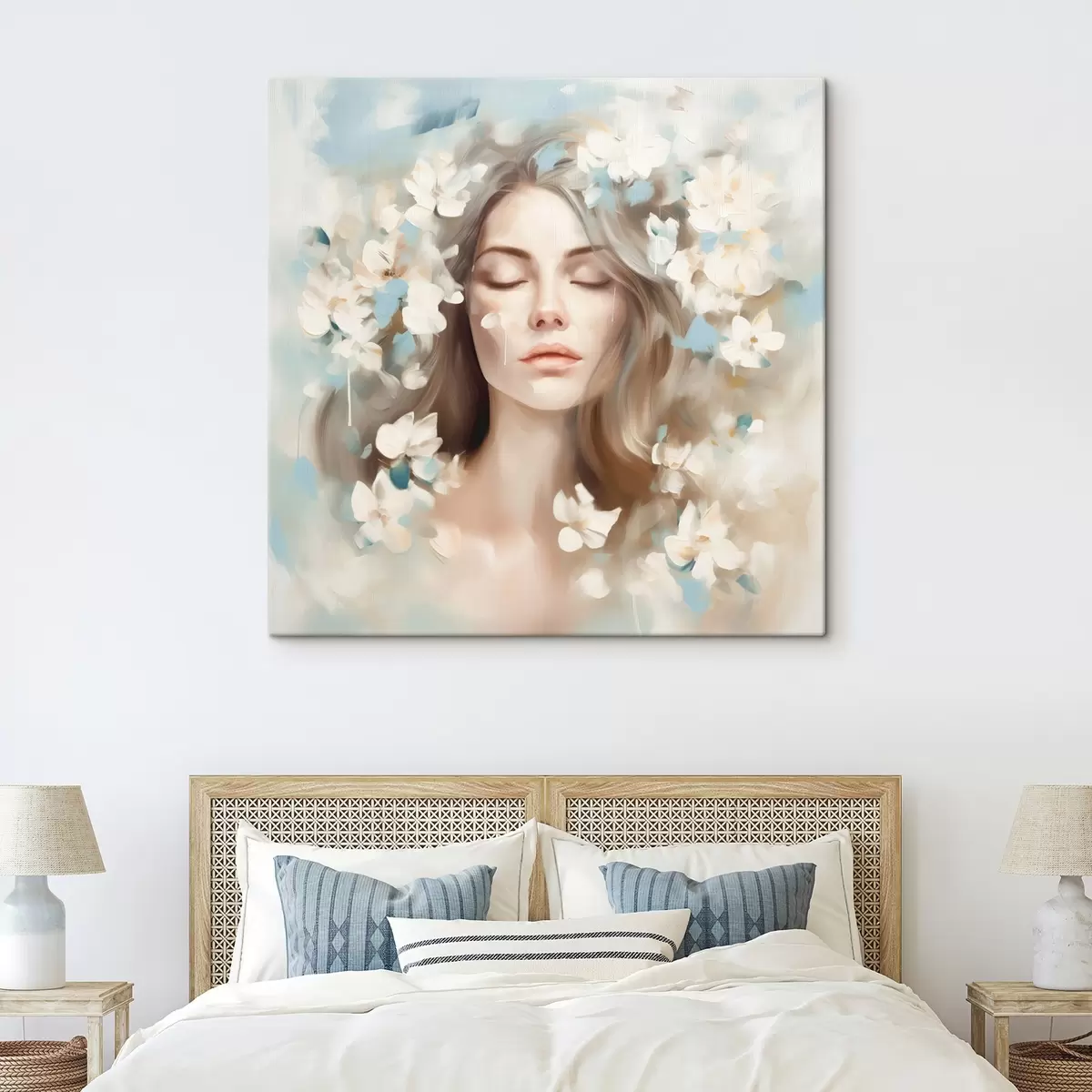 Vászonkép Absztrakt portré egy nő virágokkal ecsetvonások formájában Nr s45450
