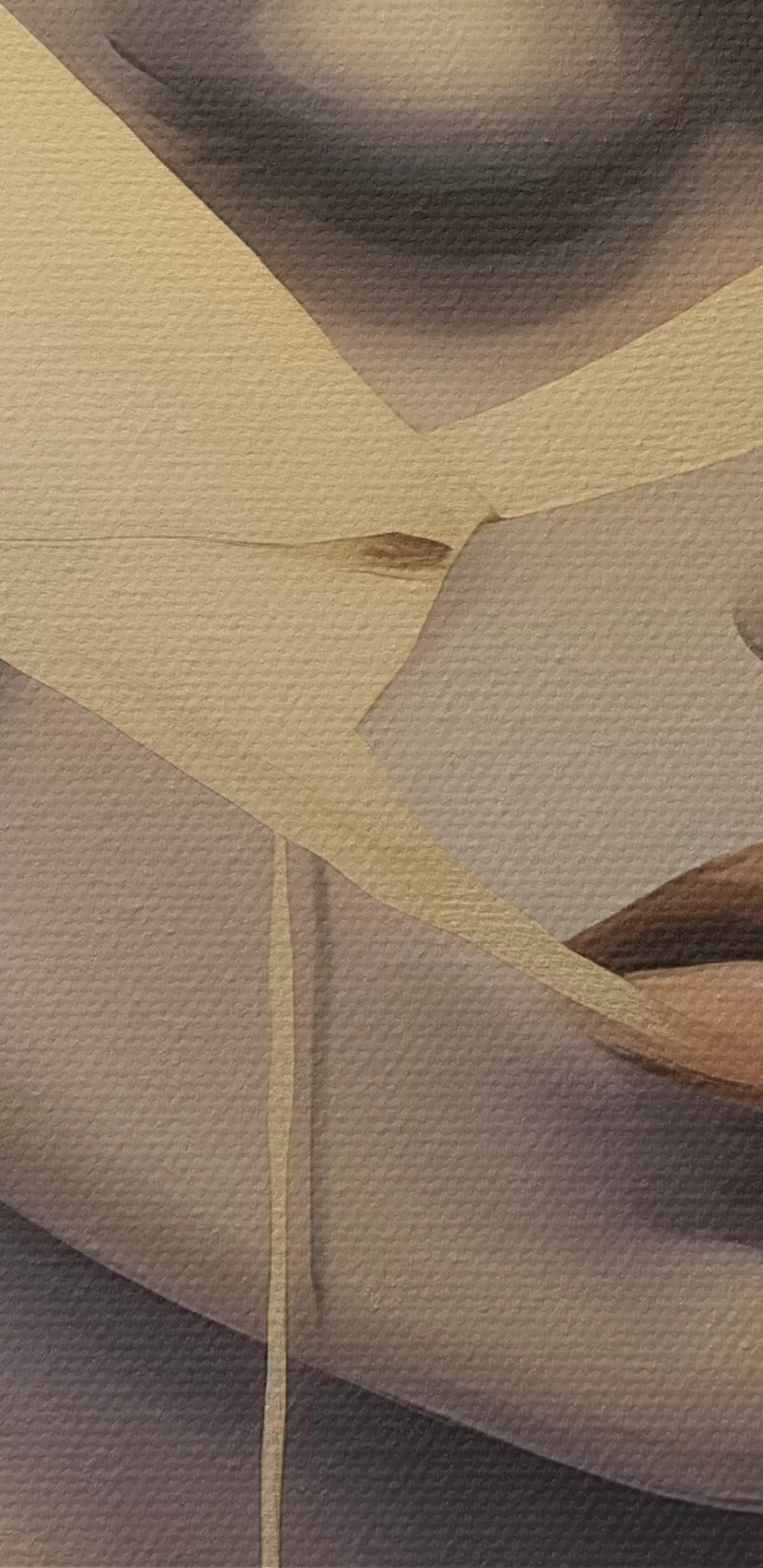 Ahhoz, hogy a vásznat a feszítőrúdra feszítsük anélkül, hogy a kép megsérülne, tükrözött képet használunk.