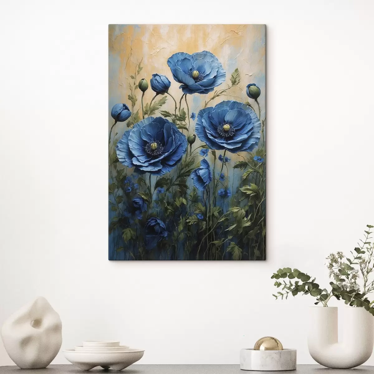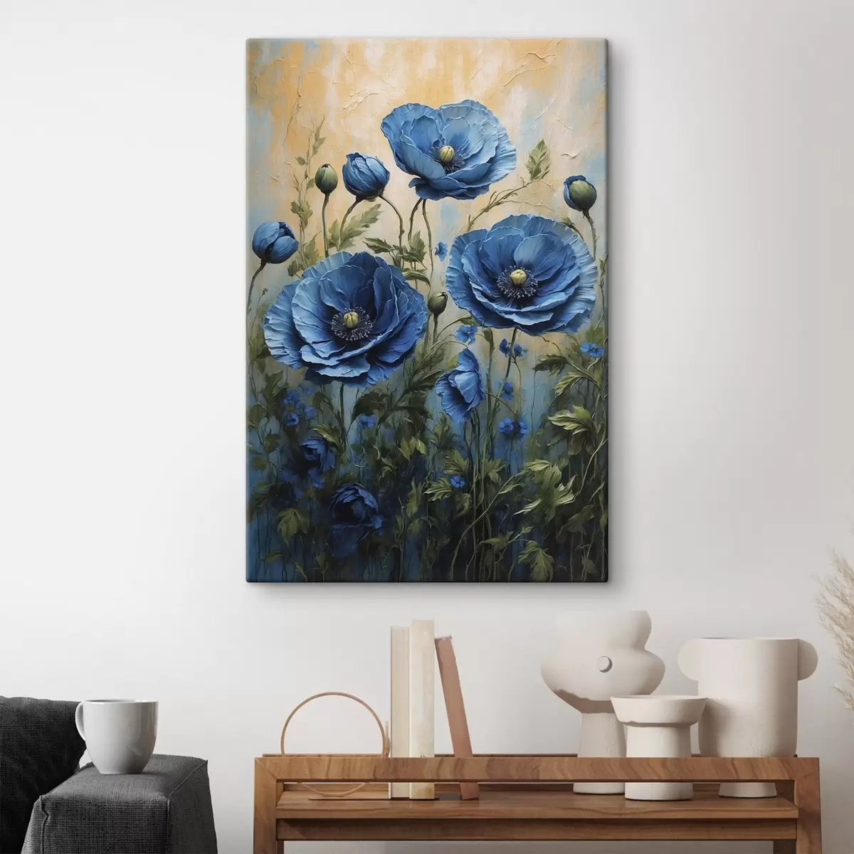 Vászonkép Nagy kék pipacsok bimbókkal világos háttéren Nr s45488