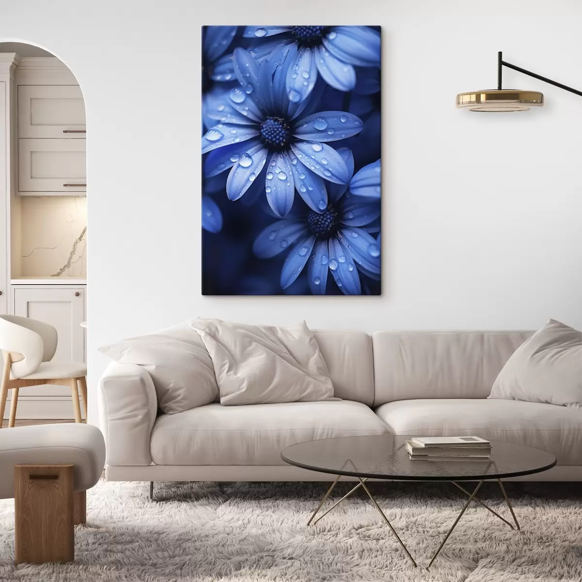 Vászonkép Kék virág vízcseppekkel a szirmain Nr s45499