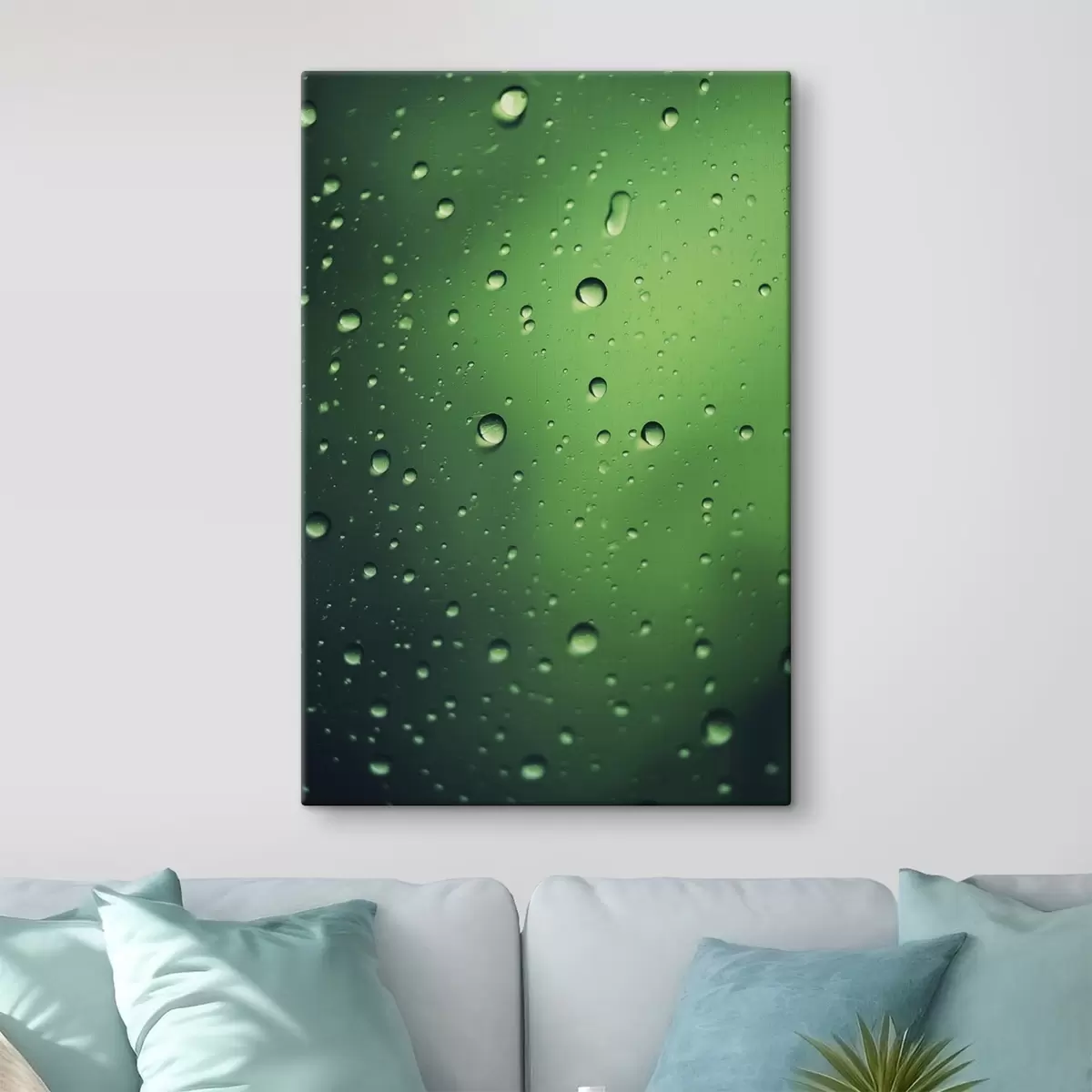 Vászonkép Vízcseppek zöld üvegen közelkép Nr s45521