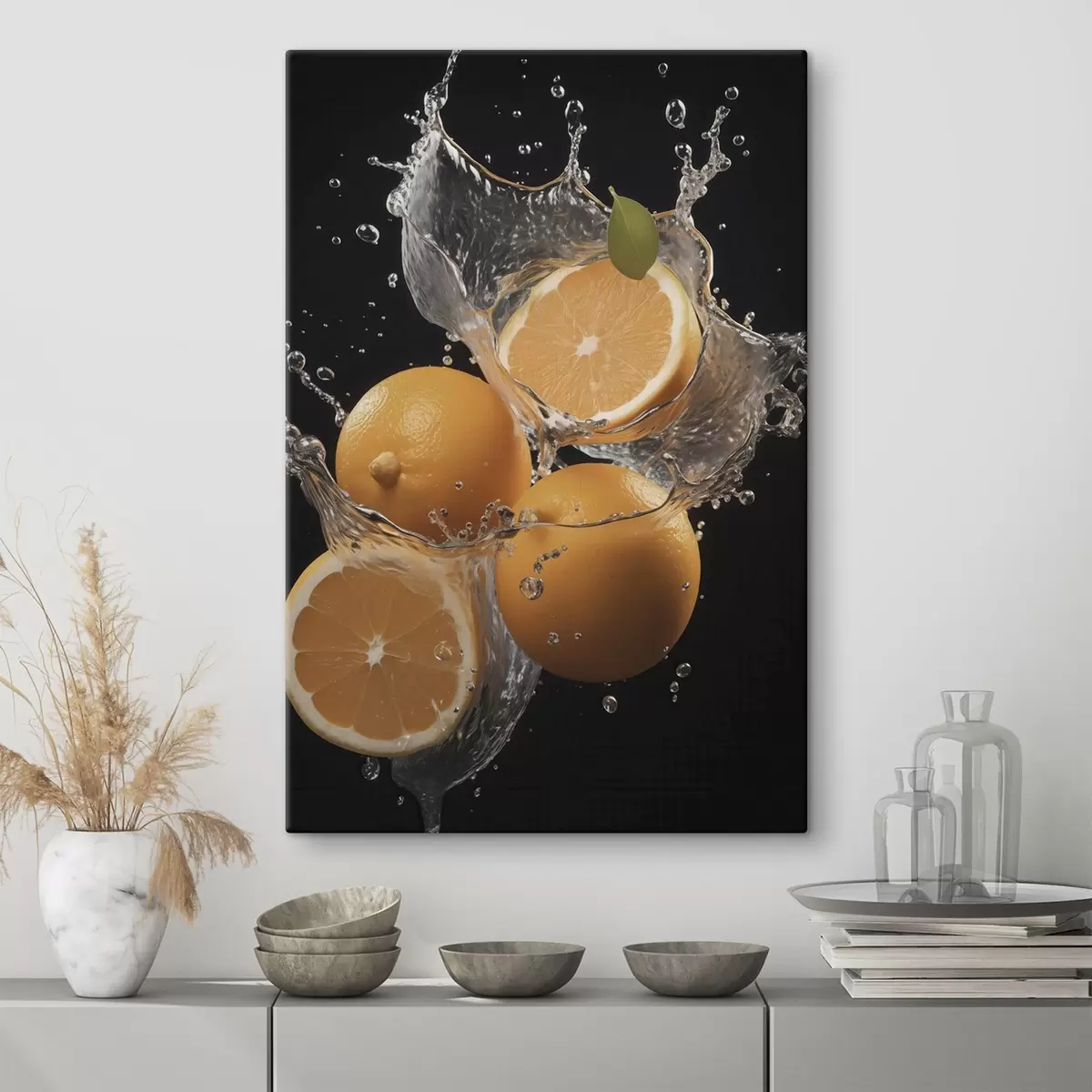 Vászonkép Lédús narancsok vízben fröccsenve Nr s45526