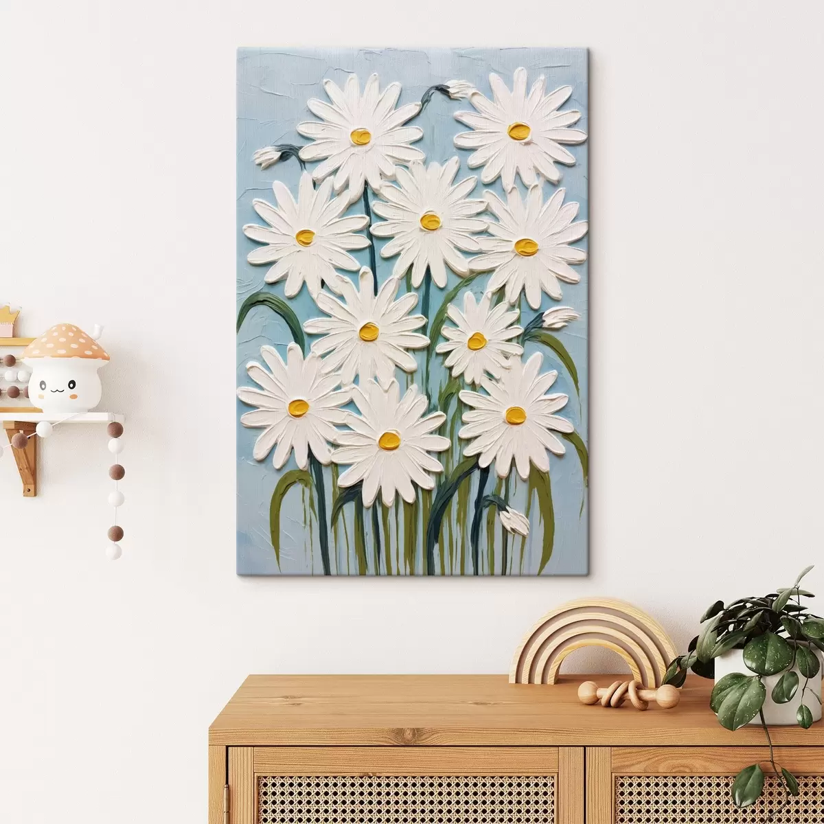 Vászonkép Százszorszépek dombormű stílusban: kompozíció kék háttéren Nr s45527