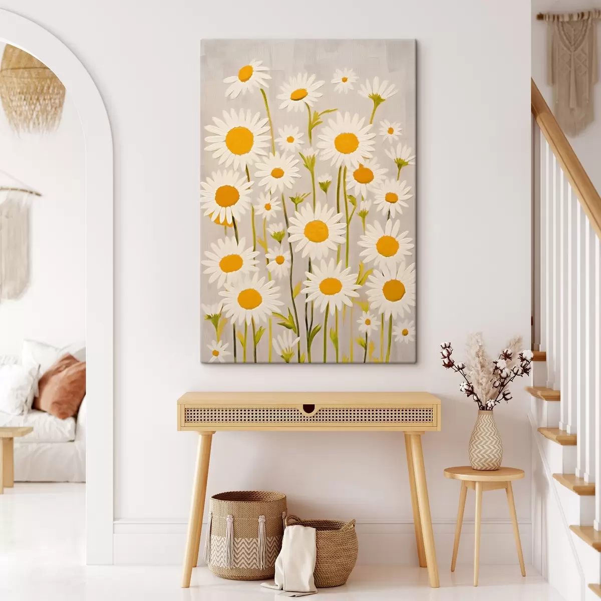 Vászonkép Vadvirágok: százszorszépek kompozíciója világos háttéren Nr s45528