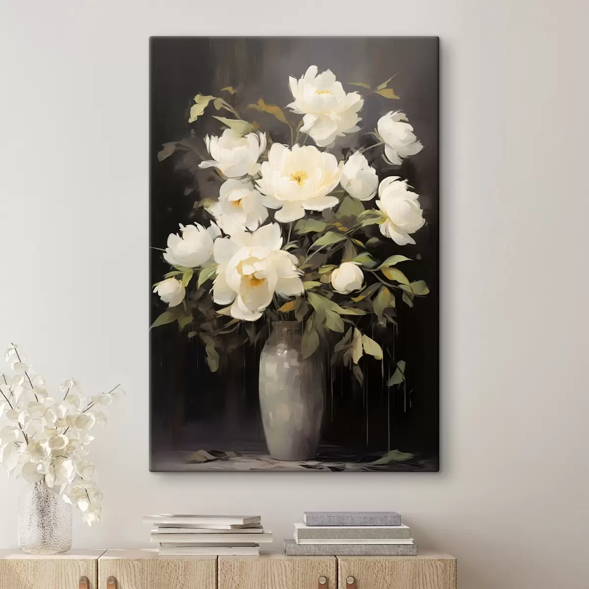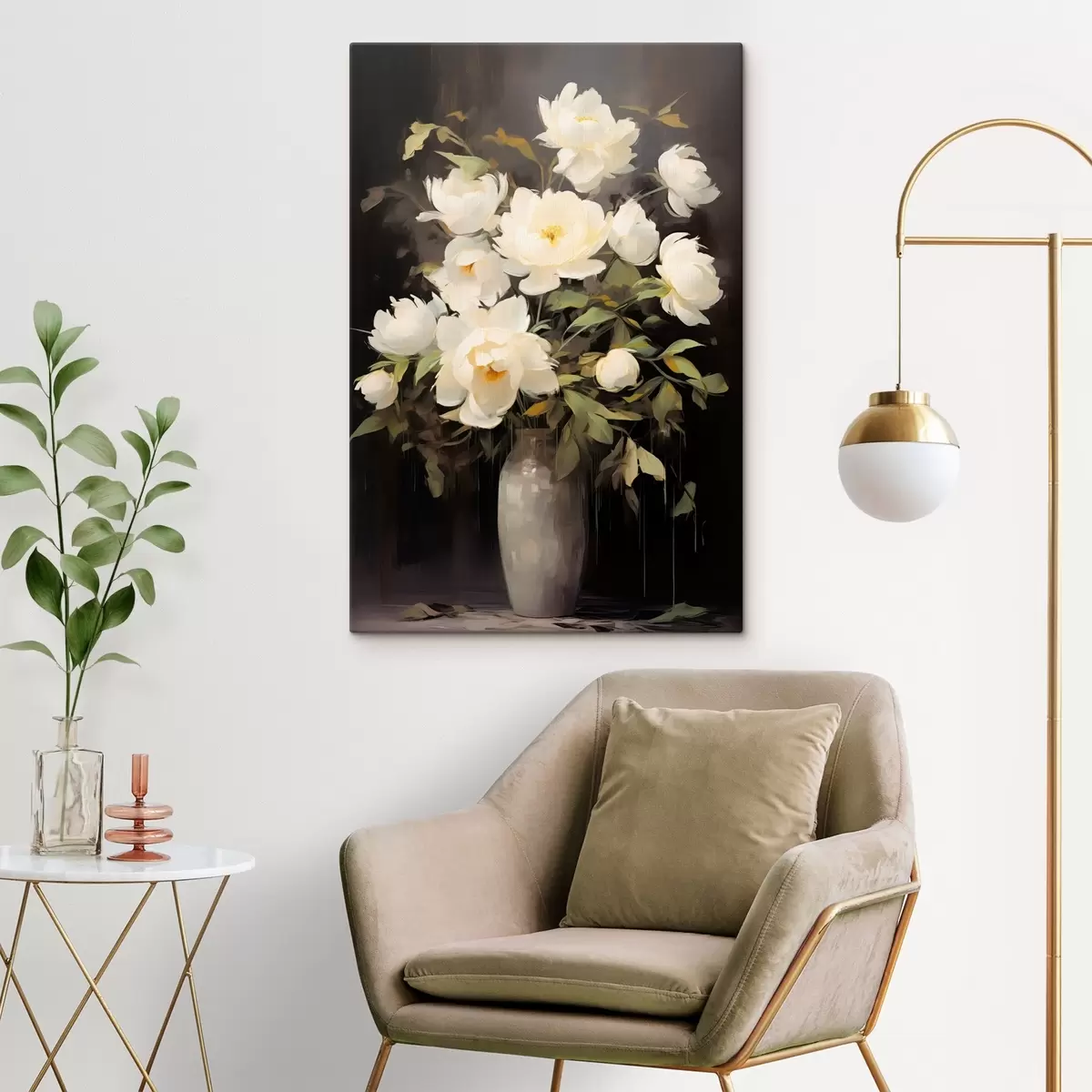 Vászonkép Finom bazsarózsa egy vázában: virágkompozíció a festészet stílusában Nr s45532