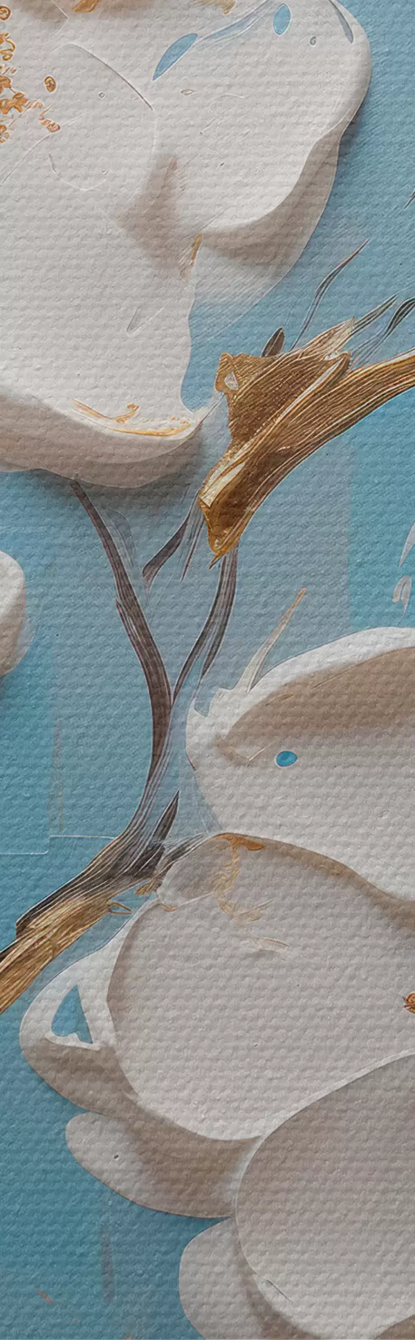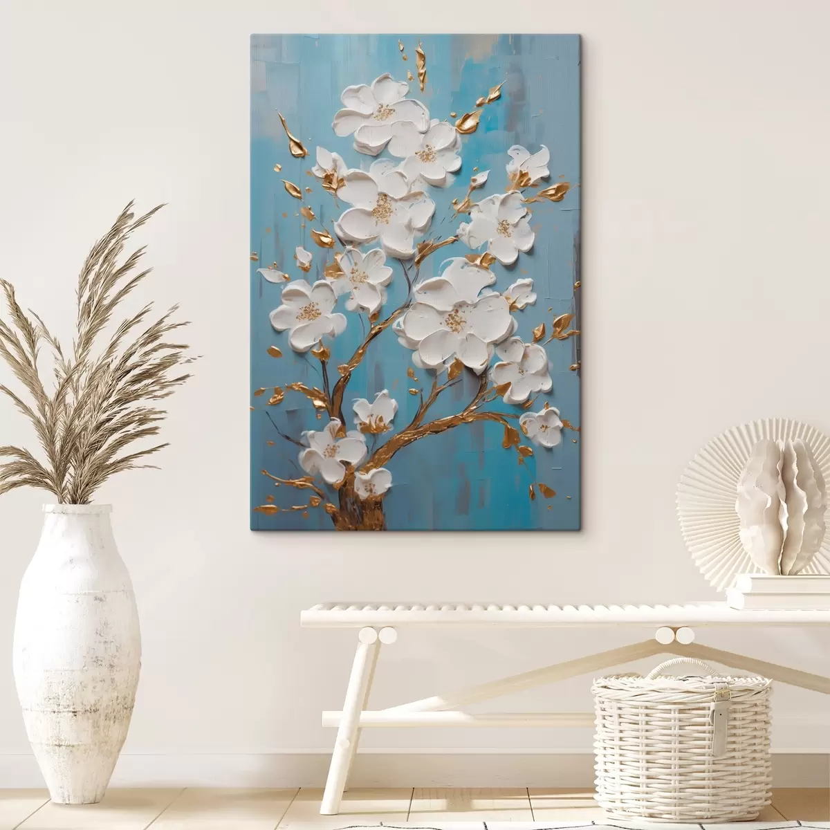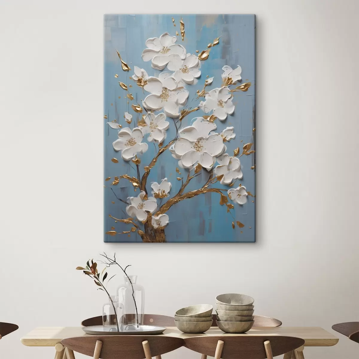 Vászonkép Fehér virágok egy ágon: dekoratív motívum világoskék tónusokban Nr s45541