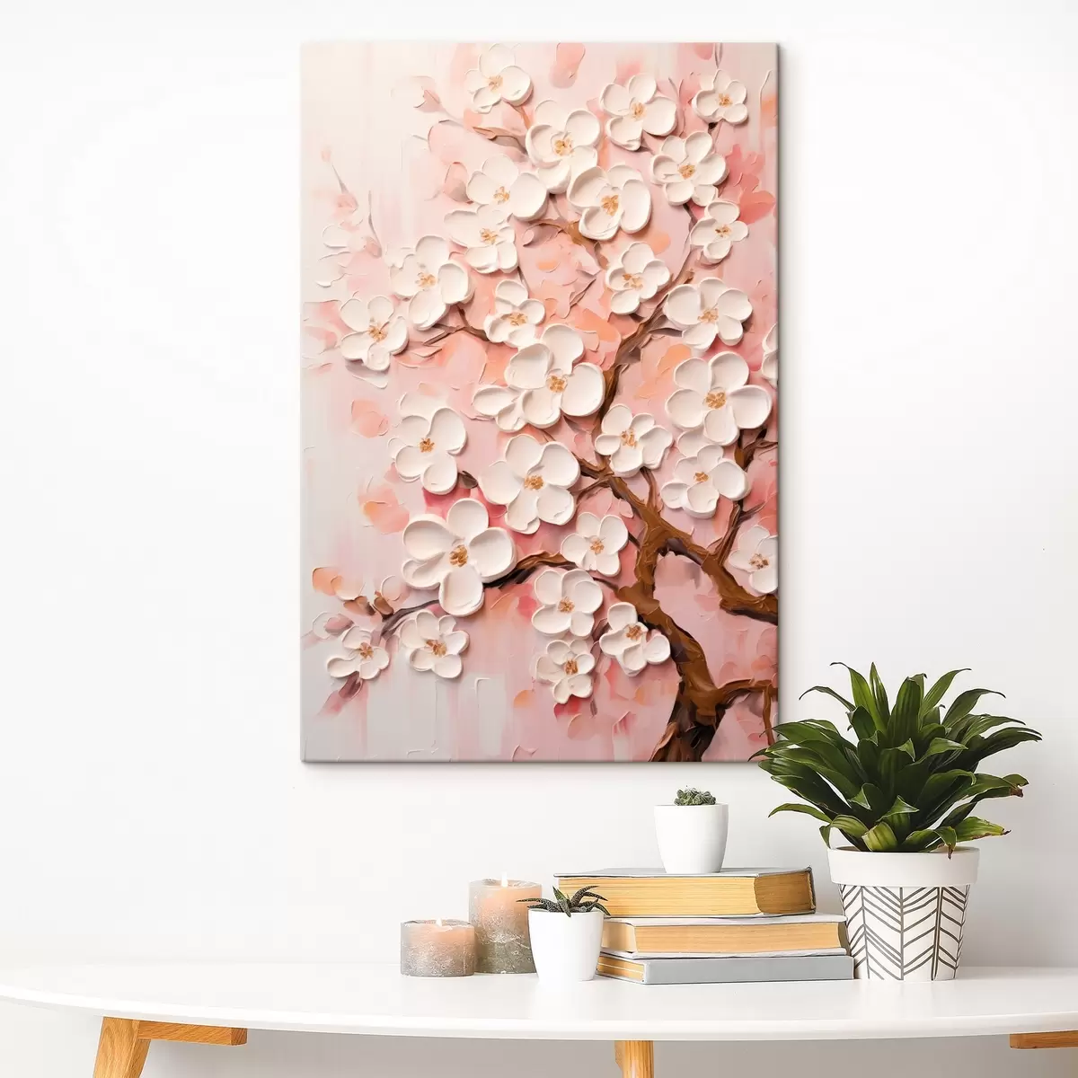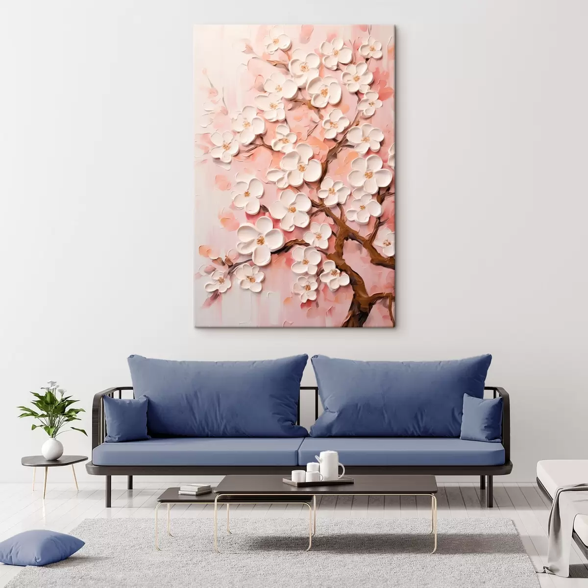Vászonkép Virágzó ág: relief kompozíció világos rózsaszín tónusokban Nr s45543