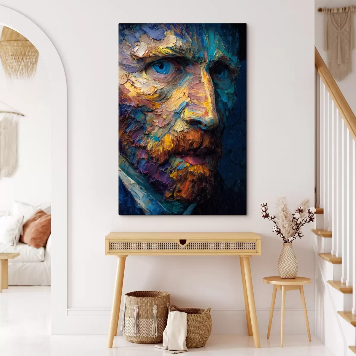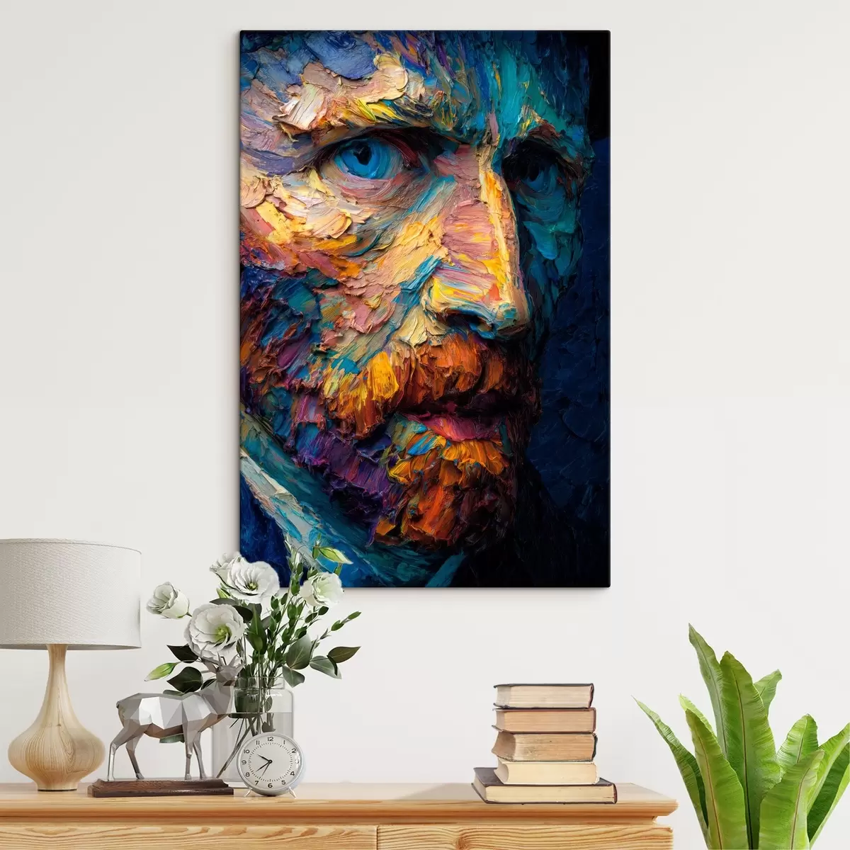 Vászonkép Dekoratív Van Gogh portré: dombormű kék és narancssárga tónusokban Nr s45546