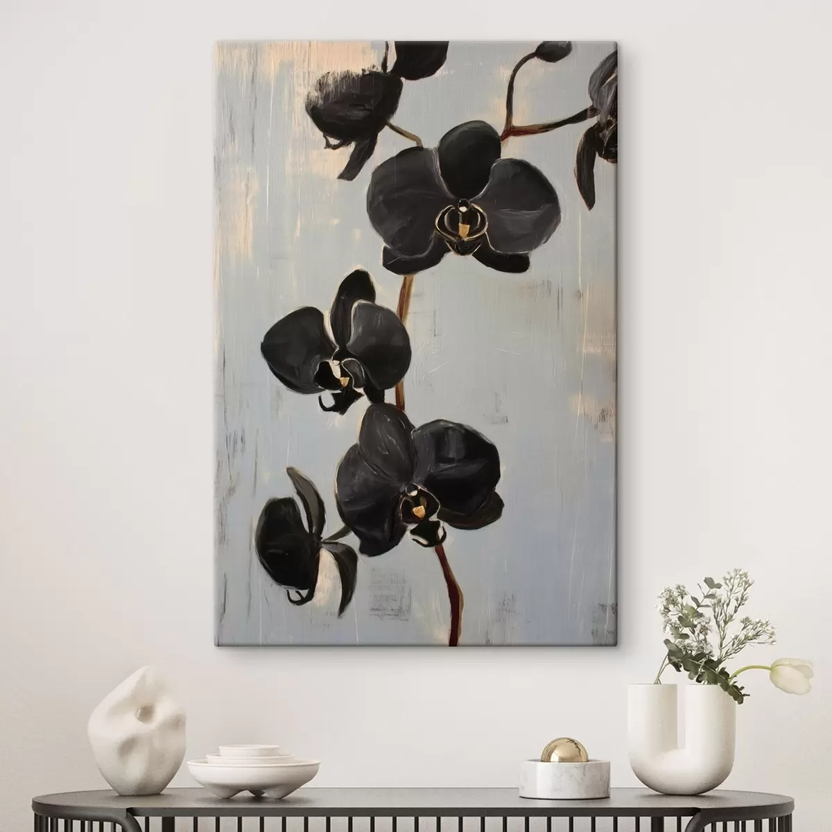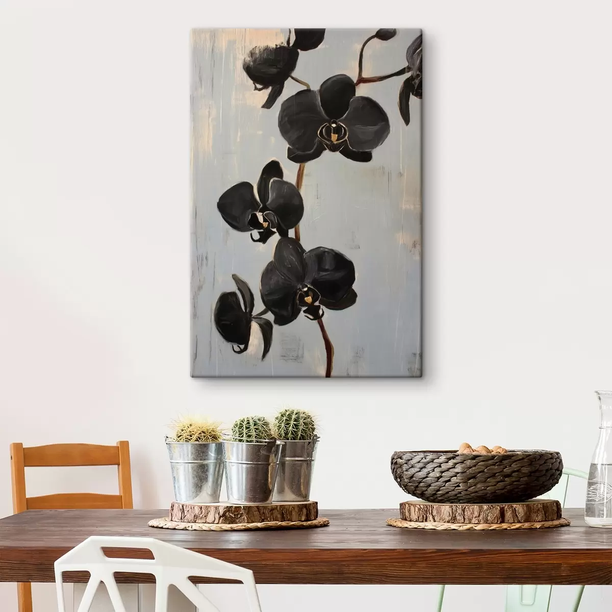 Vászonkép Dekoratív orchideák: fekete virágok szürke háttéren Nr s45547