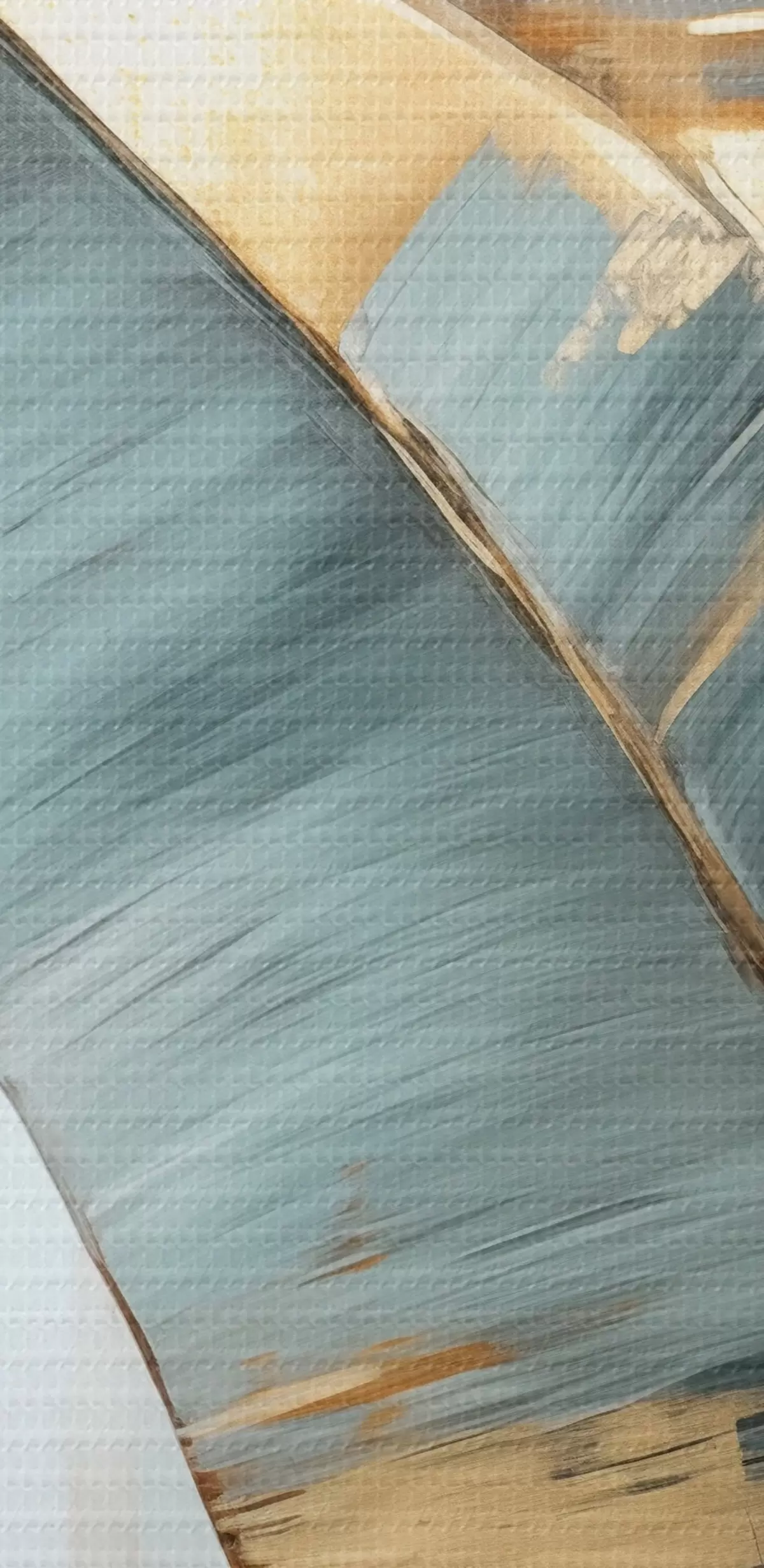 Vászonkép Tompított kék, szürke és sárga banánlevelek halmaza látható ecsetvonásokkal, fehér absztrakt háttérben Nr s45551