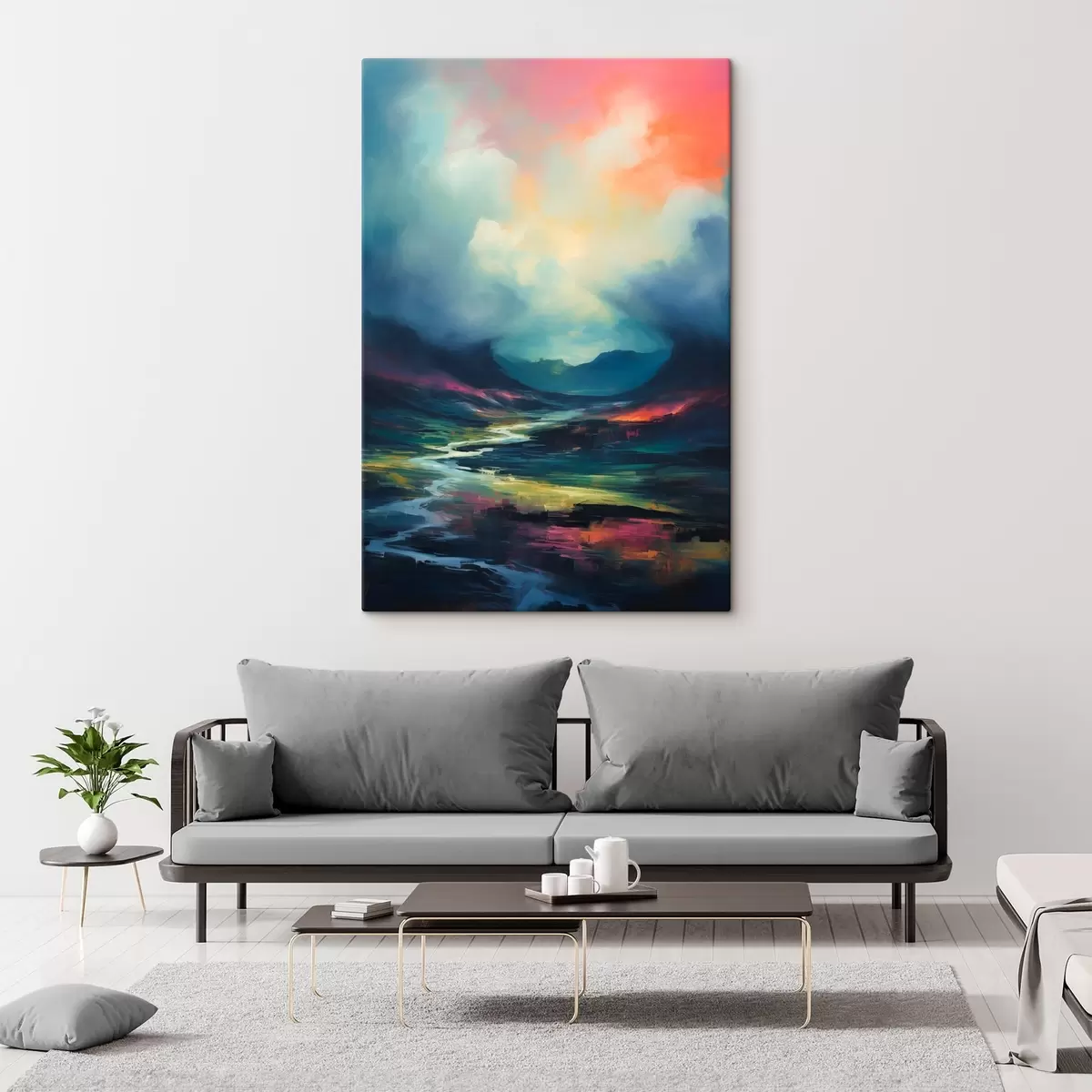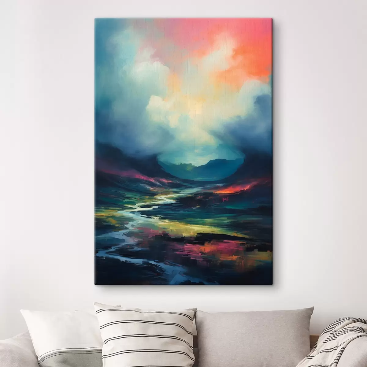 Vászonkép Absztrakt táj, folyó és hegyek Nr s45627