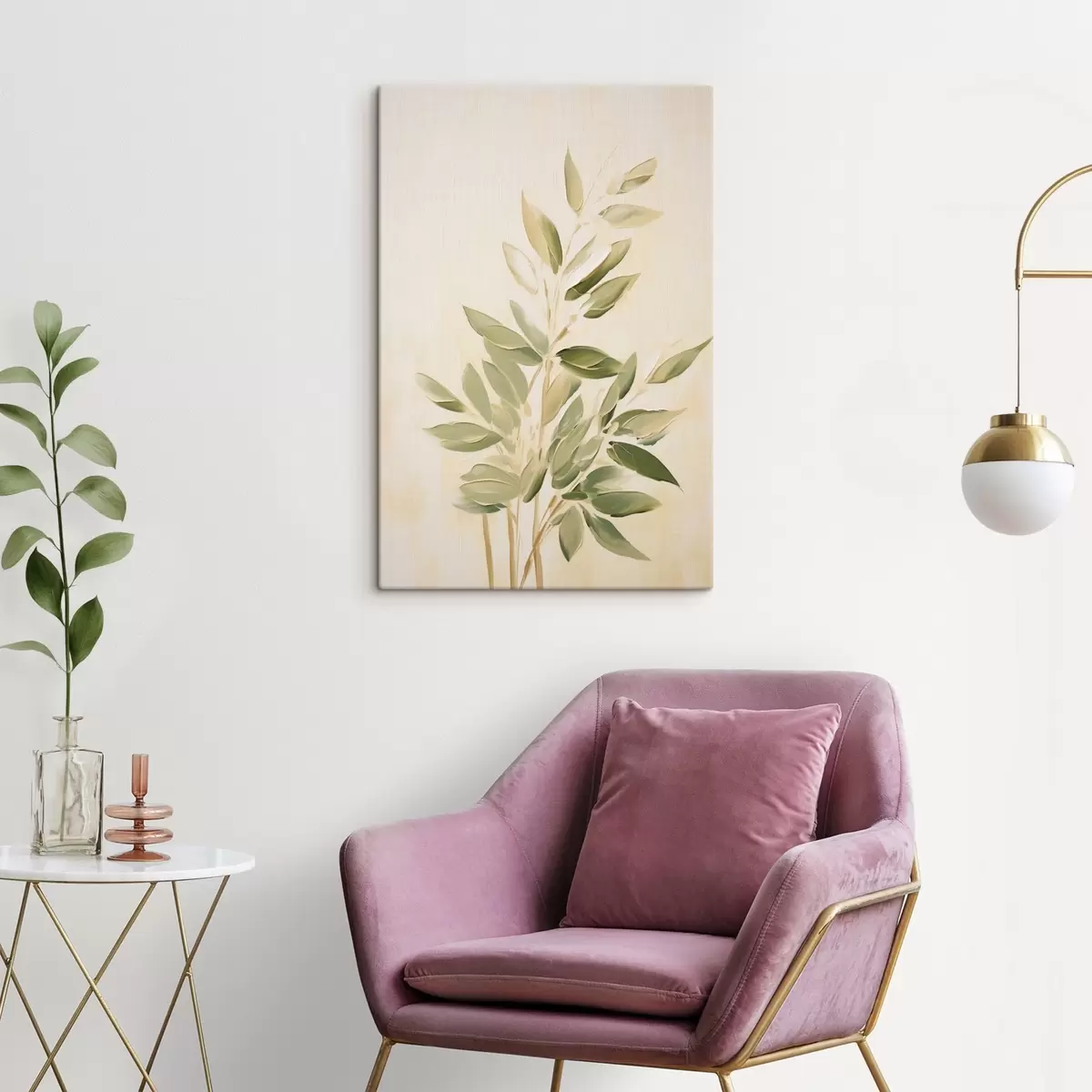 Vászonkép Zöld leveles ág világos bézs háttéren Nr s45689