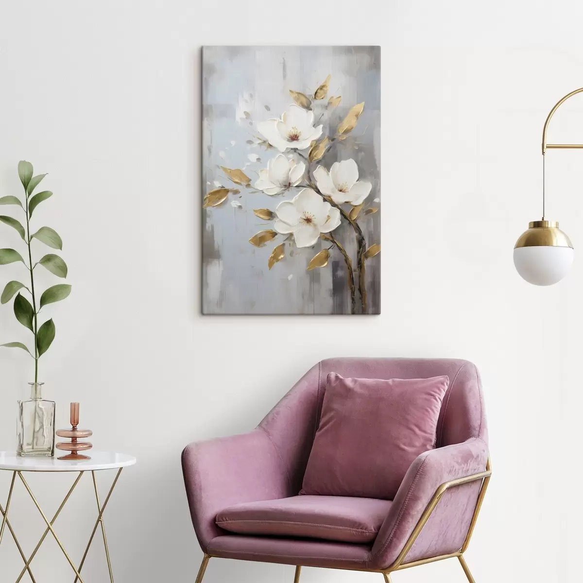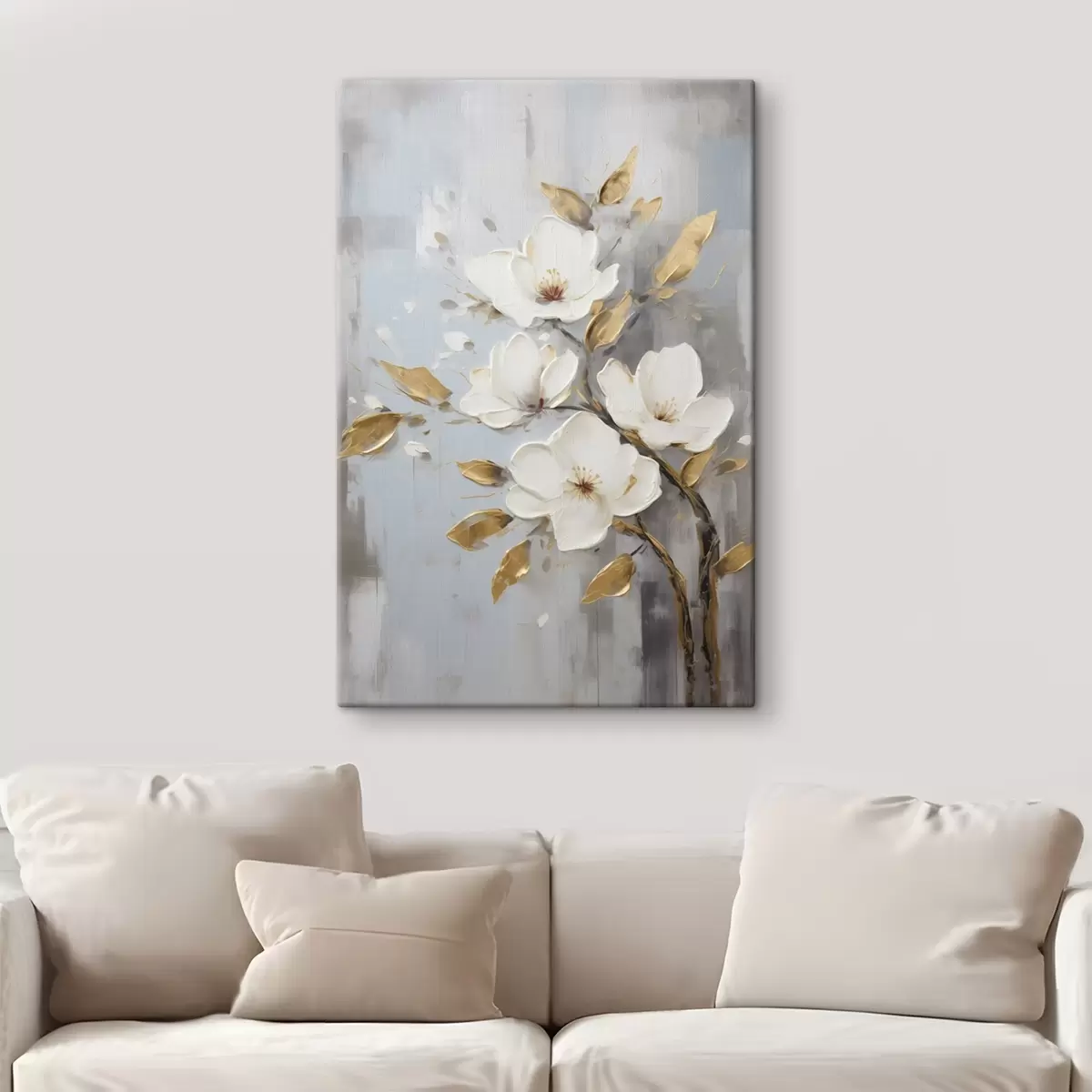 Vászonkép Fehér virágú ág, sárga-narancssárga levelekkel Nr s45692