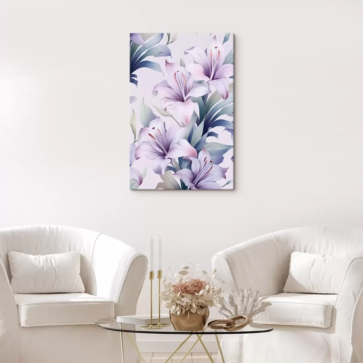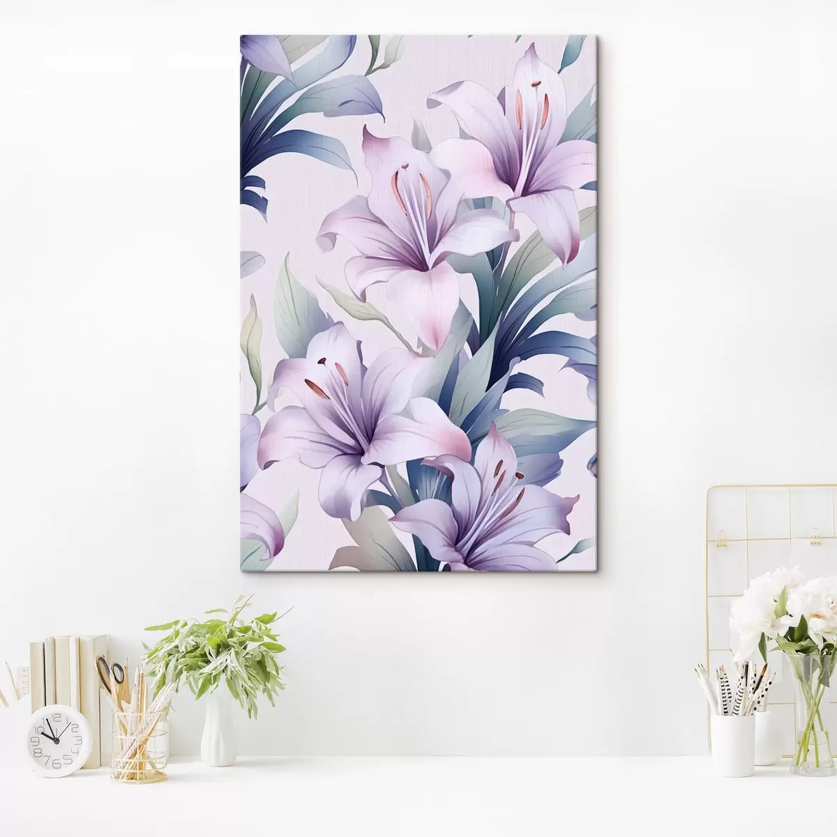 Vászonkép Nagy rózsaszín-lila liliomok zöld levelekkel Nr s45698