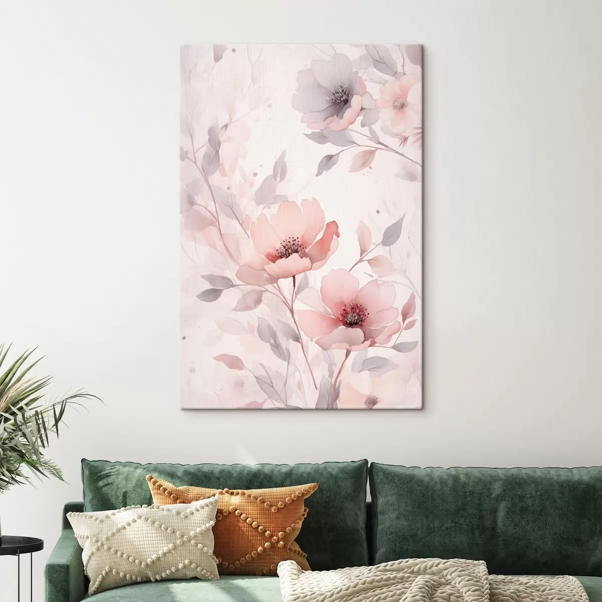 Vászonkép Finom rózsaszín-szürke virágok akvarell hatással Nr s45702
