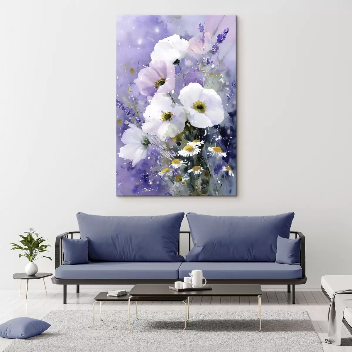 Vászonkép akvarell csokor lila és fehér árnyalatokban Nr s45719