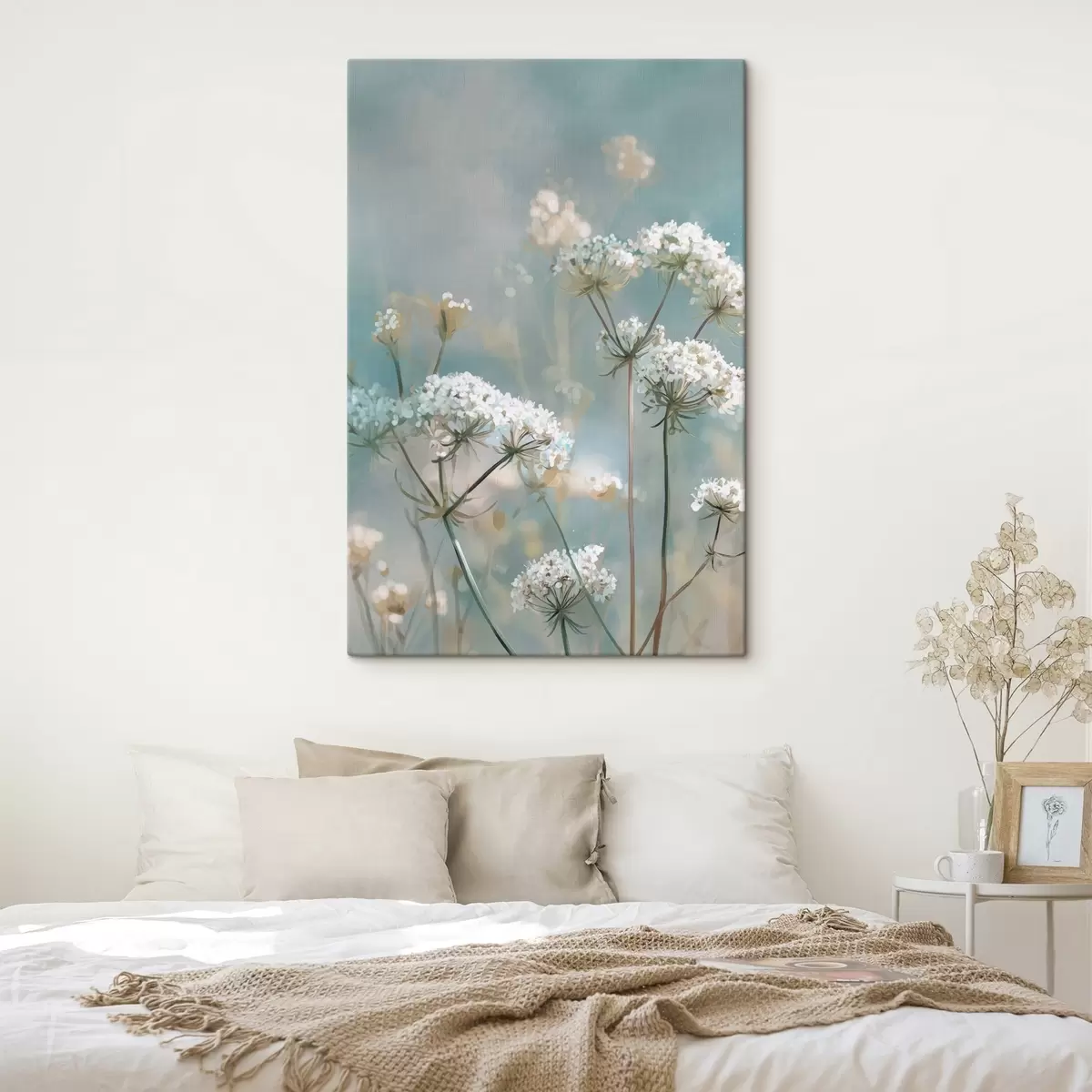 Vászonkép Kék háttér előtt akvarell stílusban festett királynő Anne csipkevirágok Nr s45721